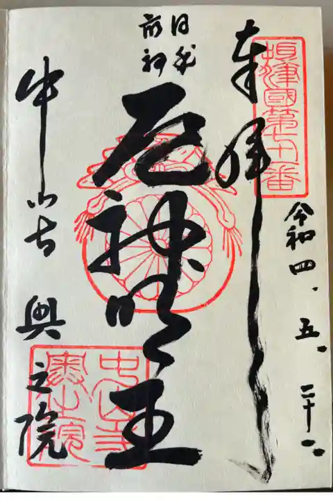 慶長8年(1603)豊臣秀頼が中山寺を再興するまでは、この奥の院が当時の大伽藍だったそうです。応神天皇の御代、巷に疫病が流行り、こちらに天皇は使いをつかわされ、天神地祇をまつり、悲運の皇兄の忍熊皇子の鎮魂供養をされたところ、たちまちおさまったそうで、これが、御朱印にも書かれてある「日本最初の厄神明王」の草創とされるとか。😯