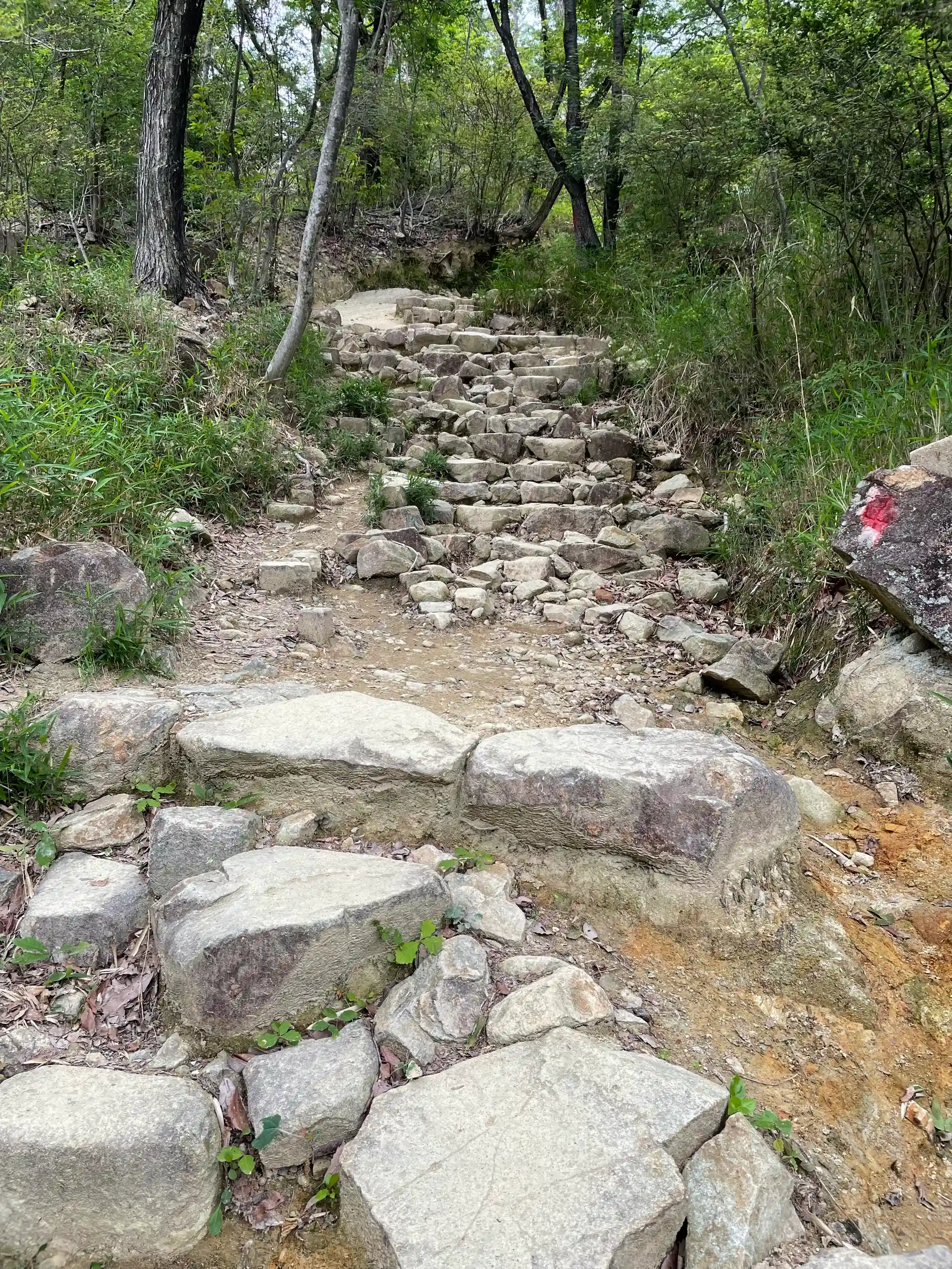 結構見た目に厳しそうな道もありますが、緩やかな道もあり、かなりの年配の方から若い子達まで幅広く歩かれてましたよ。走ってる人もいました!😅岐阜城よりは断然歩きやすかったのでラクに感じられた気がします。😊天候によるかもしれませんけど。