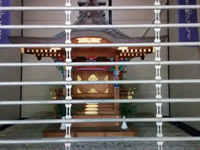 ご社殿がガレージのような建屋の中にすっぽり入っています。