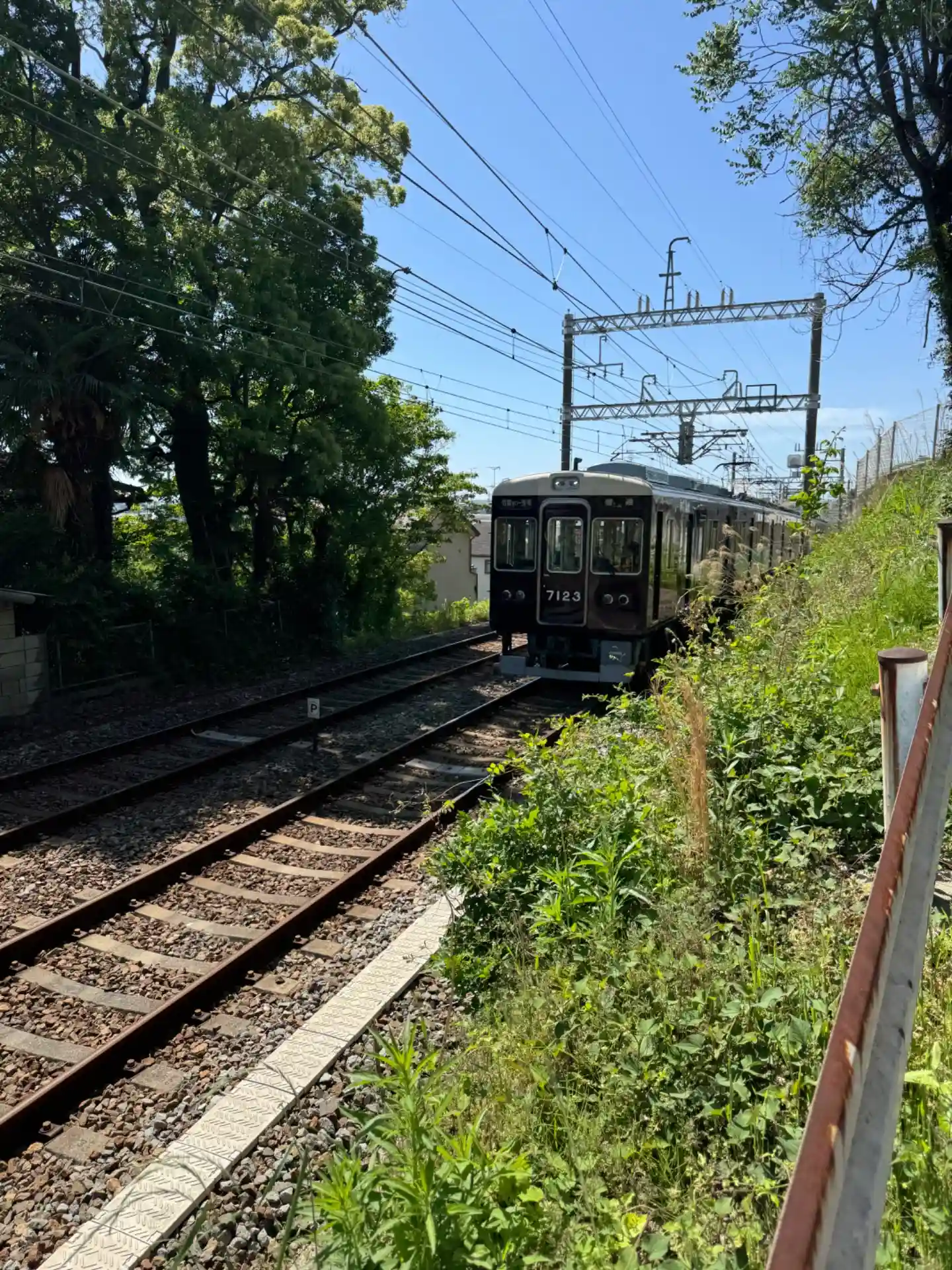 この先すぐ阪急電車の踏切です