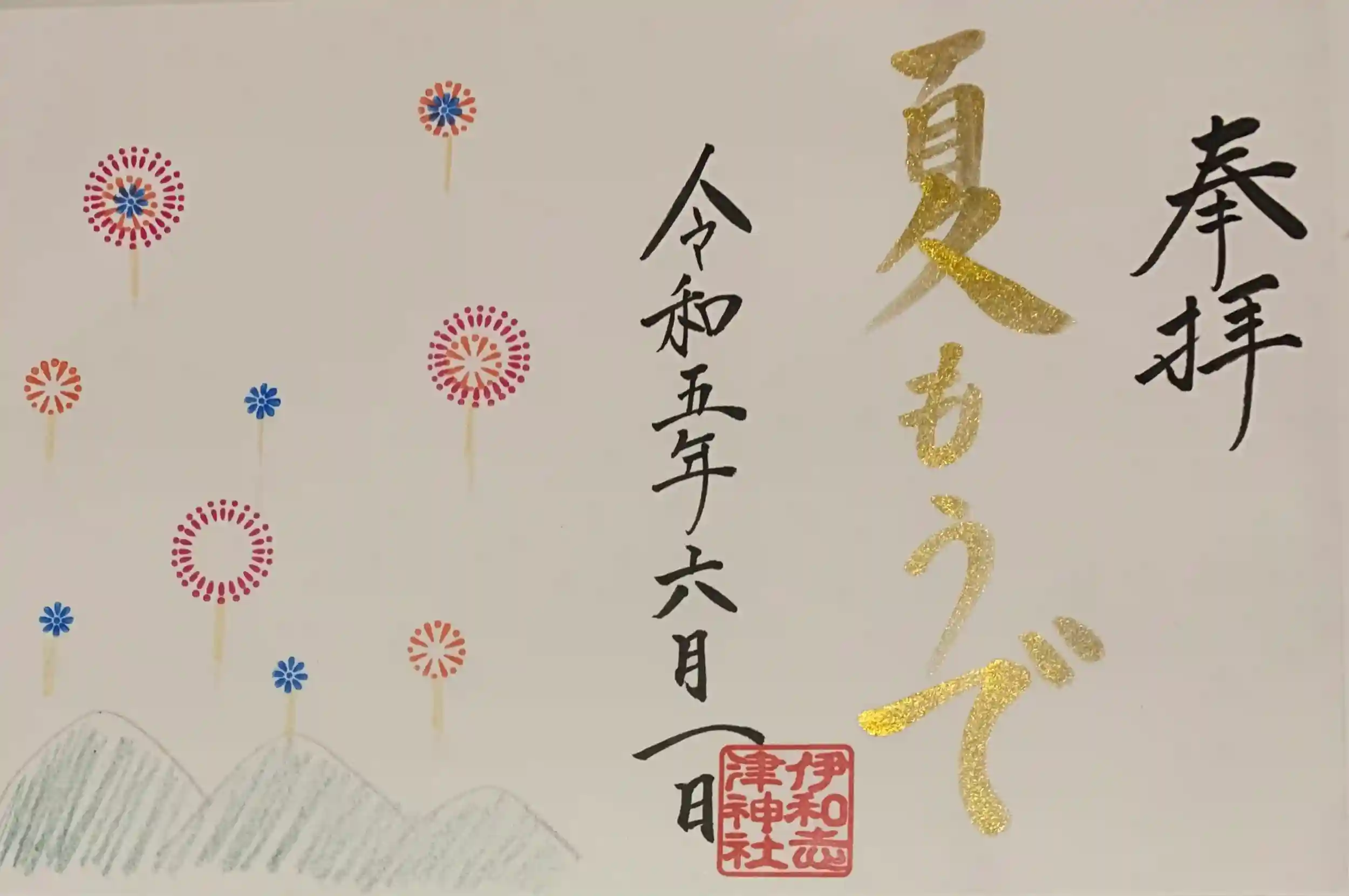 朔日参り。阪急電車の逆瀬川駅から徒歩約5分ほど。6月から8月までの期間限定の御朱印を拝受。