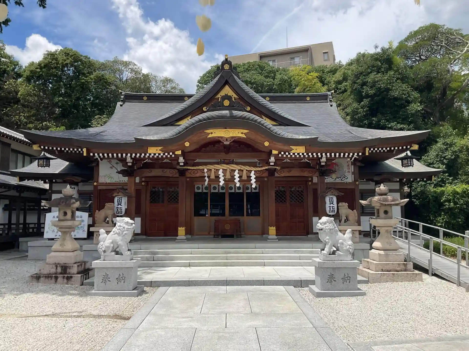 芸事の神様として慕われ宝塚歌劇団のお参りもあり、また昭和30年代に手塚治虫氏よりぼんぼりをご奉納いただいている縁から手塚キャラクターのお守りや御朱印が用意されています。