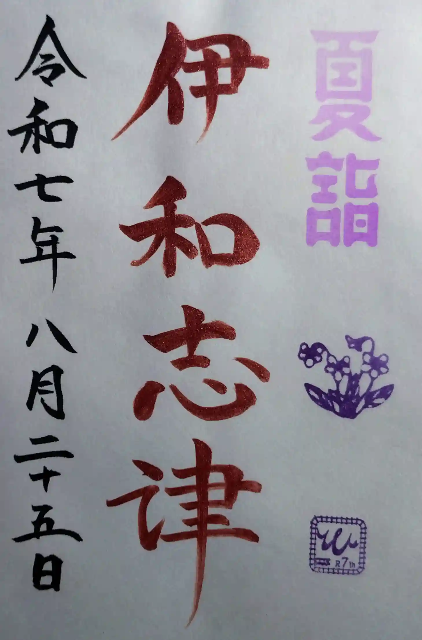 伊和志津神社 朱印帳 裏側