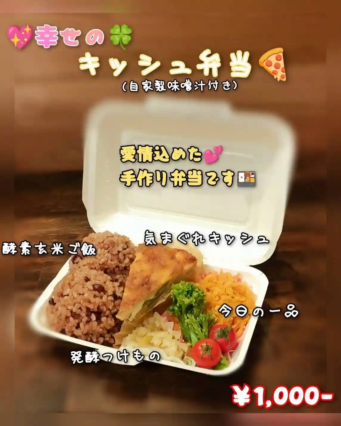 (幸せのキッシュ弁当🍱、炭火焼き珈琲☕️、酵素ジュース🥤など)