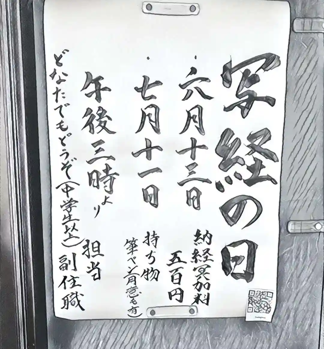 持ち物:筆ペン(お寺でのご用意もあります)