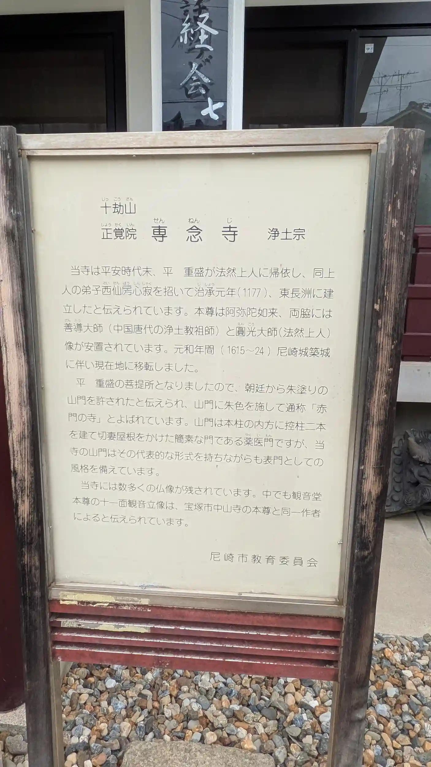 尼崎寺町最終は専念寺へ。(全昌寺抜けてました😭)。平重盛公菩提寺。本堂と西堂があり、西堂には旧本尊の阿弥陀如来と十一面観音菩薩、日限地蔵尊などがあり、中でも十一面観音は中山寺の御本尊と印相が同じで同材同作と伝えられているとのこと😲また海上交通の守護として平家一門に崇められていたそう。山門の沿革には秘仏となっているので観音堂の拝観できるのは変わりのものなのかな?本堂などは空襲で被災していますが仏様が無事だったのは何よりですね😊