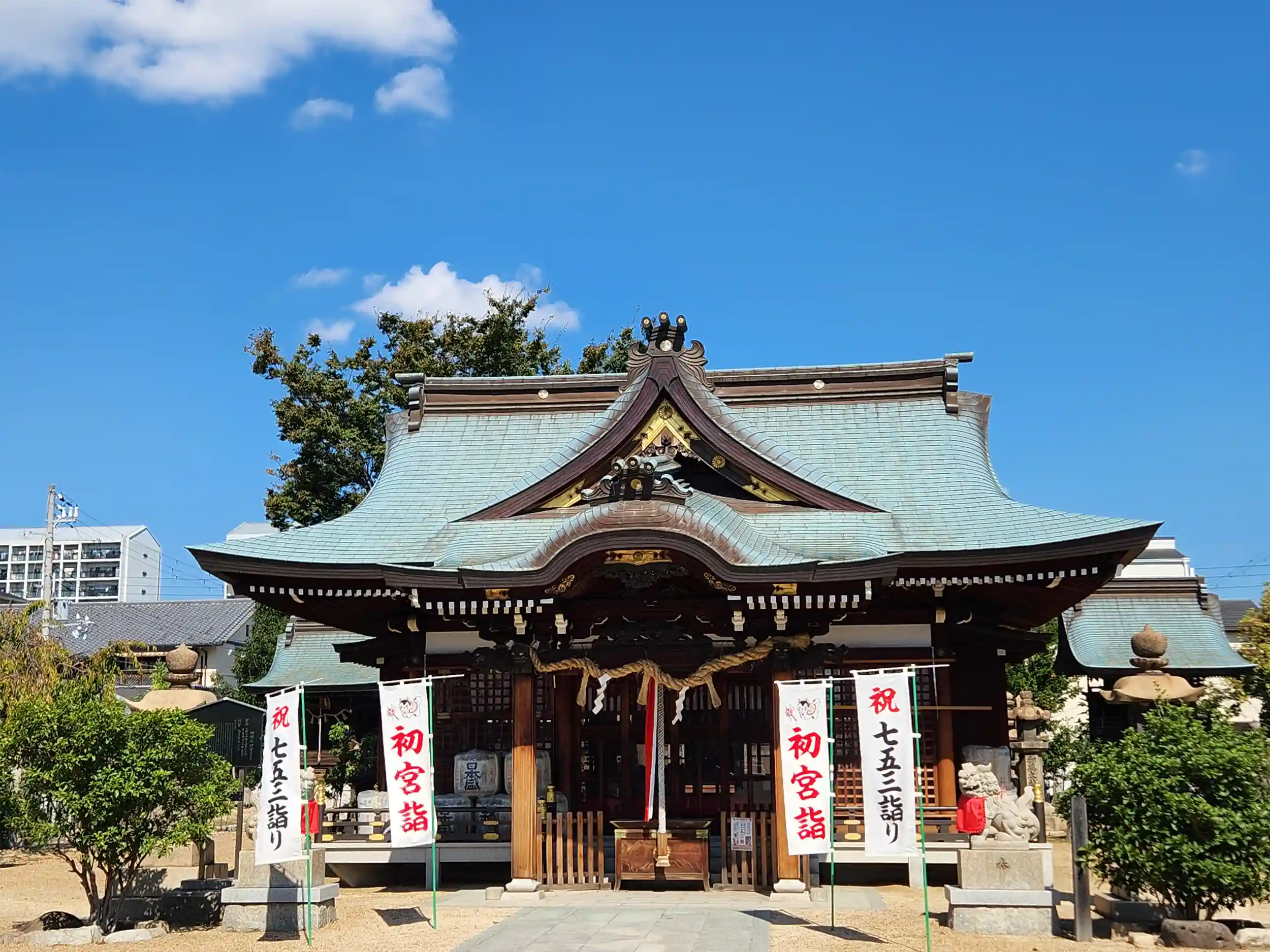 兵庫県尼崎市の南、大阪府との県境近くに鎮座。