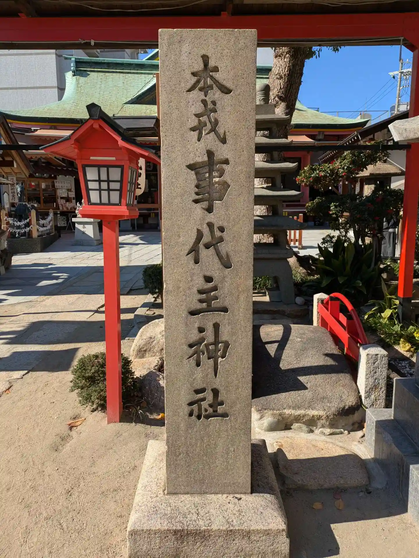 社殿手前の石柱には 本戎事代主神社とありました。