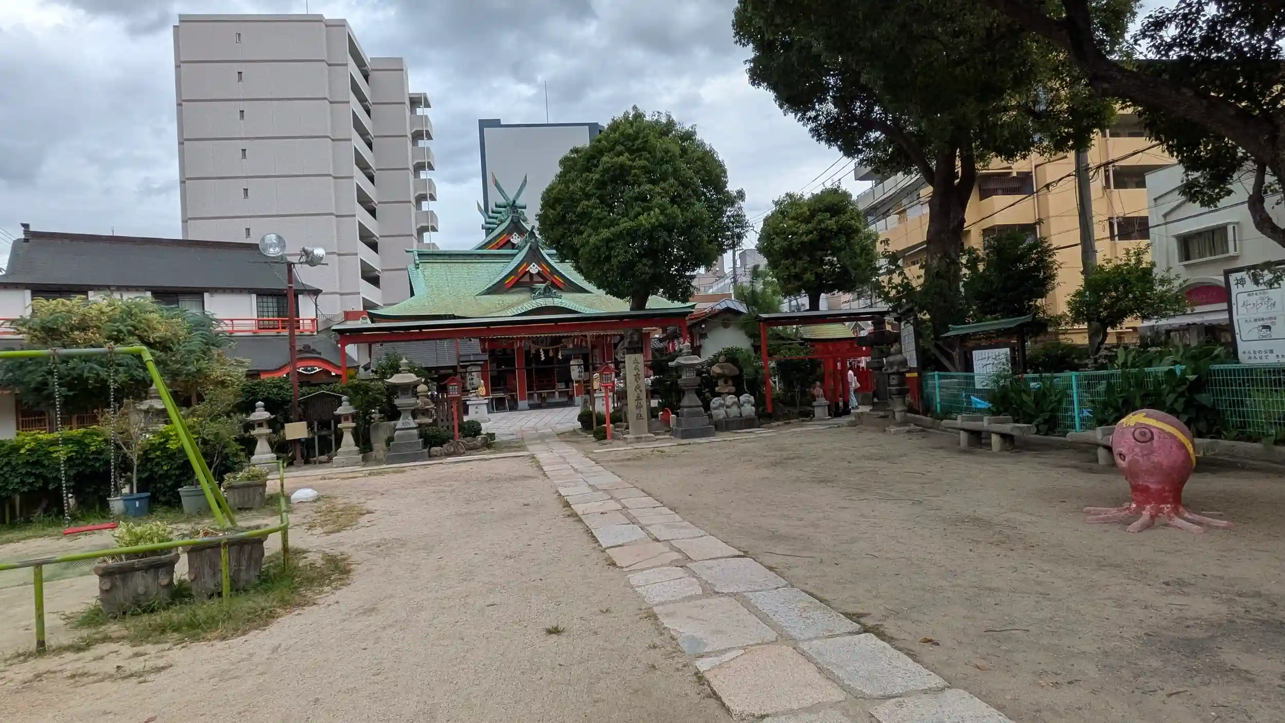 阪神尼崎駅近くまで戻り尼崎戎神社へ。さすがの大鳥居は遠くからでも目立ちます😊鳥居先の参道は公園になっており、子供よりはお年寄りの方が多かった・・・😅