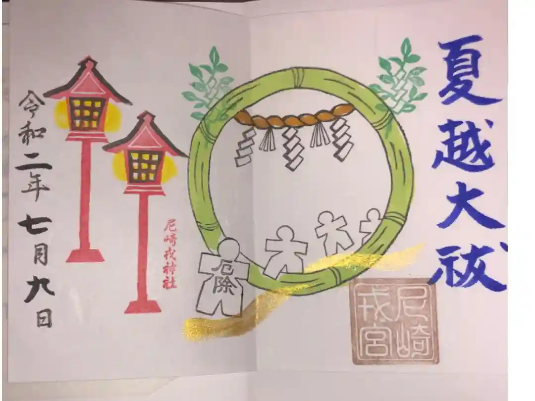 右側に「夏越大祓」と青で筆書きされ、「尼崎戎宮」印が押されています。