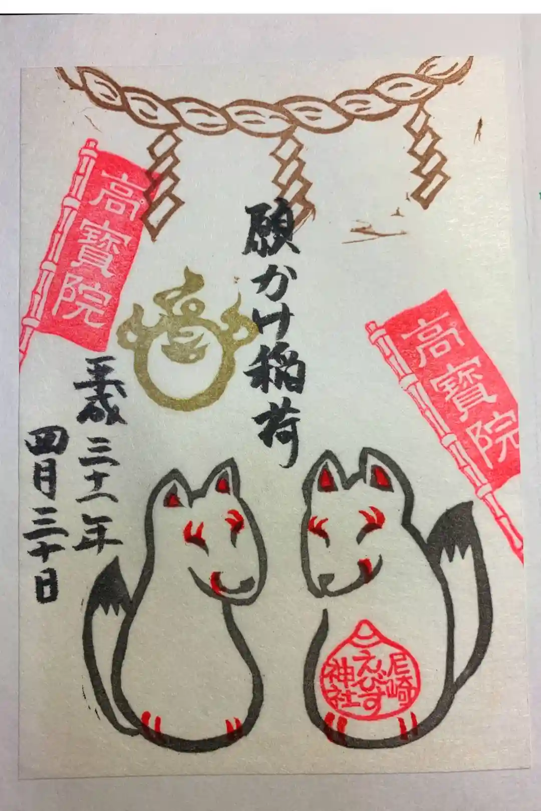 右側真ん中に「高寳院」の文字が入った宝珠の印が金色で押されています。