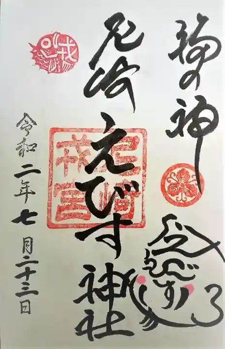 右下に御神紋印が押され、その下に顔の部分が「えびす」の文字で作られているえべっさんの顔が描かれています。