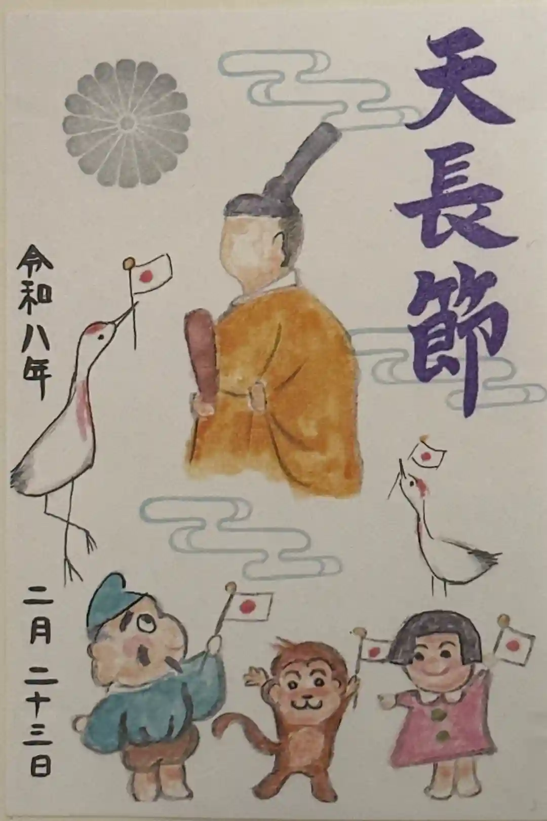 真ん中上部に菊紋が紫色で描かれています。