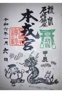 七福神の御朱印。辰年にちなむ龍の宝船に乗る神様が満面の笑顔。鶴亀鯛がいてかわいいです。