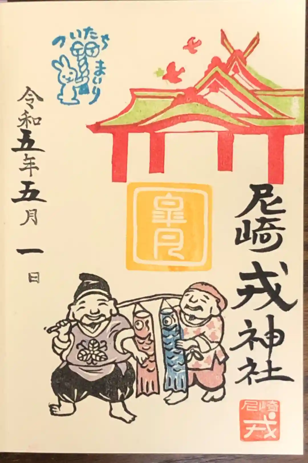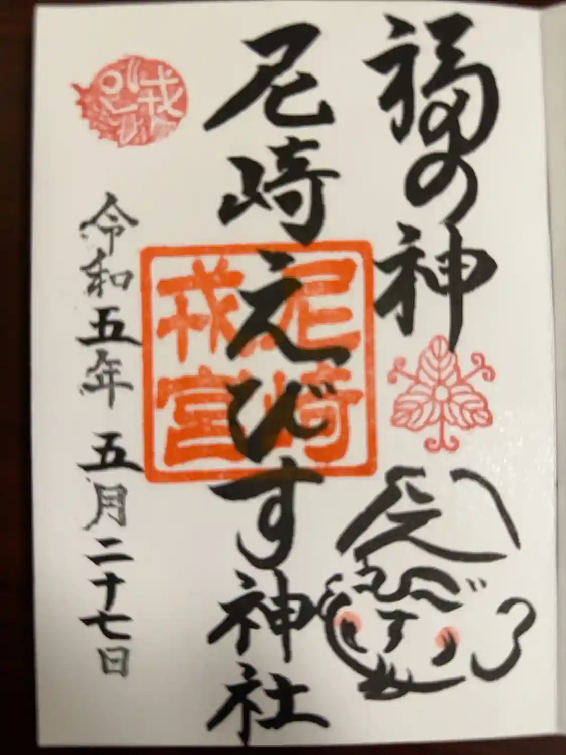 御朱印。えべっさんが書いてあります。なんだかいいことありそうな気がします。