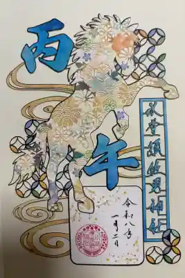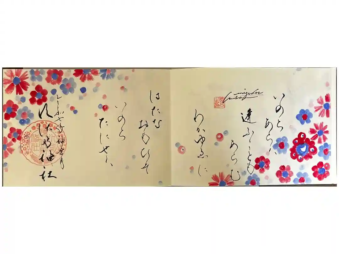 拝殿天井画「万葉の花」にちなんだ、万葉集の和歌御朱印がございます。 | |||