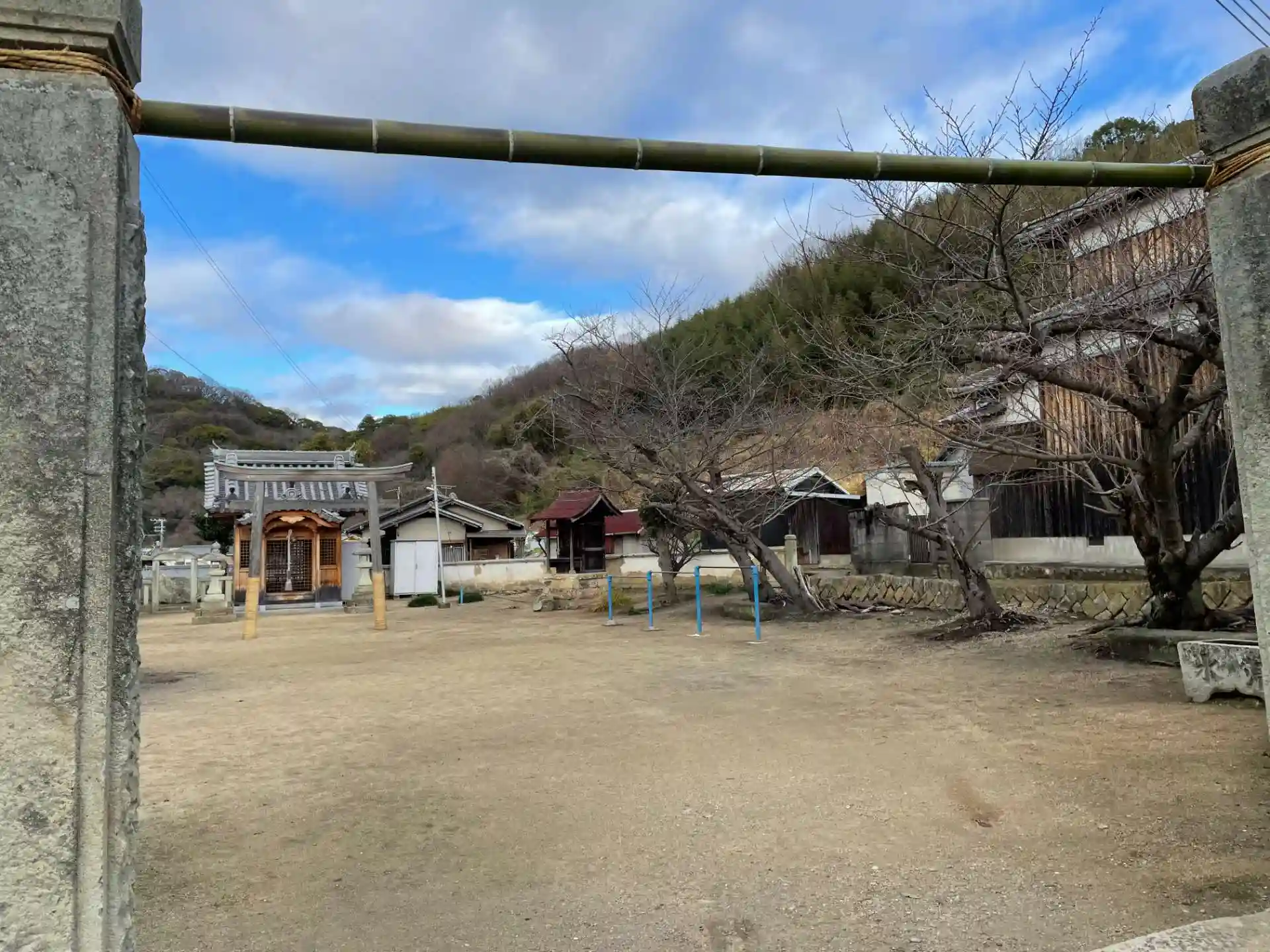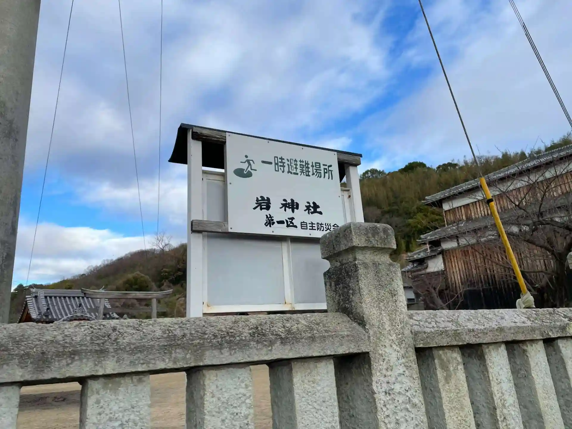 菅原道真公が筑紫へ左遷される途中に 当村の東にある日笠山に登られ 瀬戸内海を眺められた時に腰掛岩で御休憩せられた。