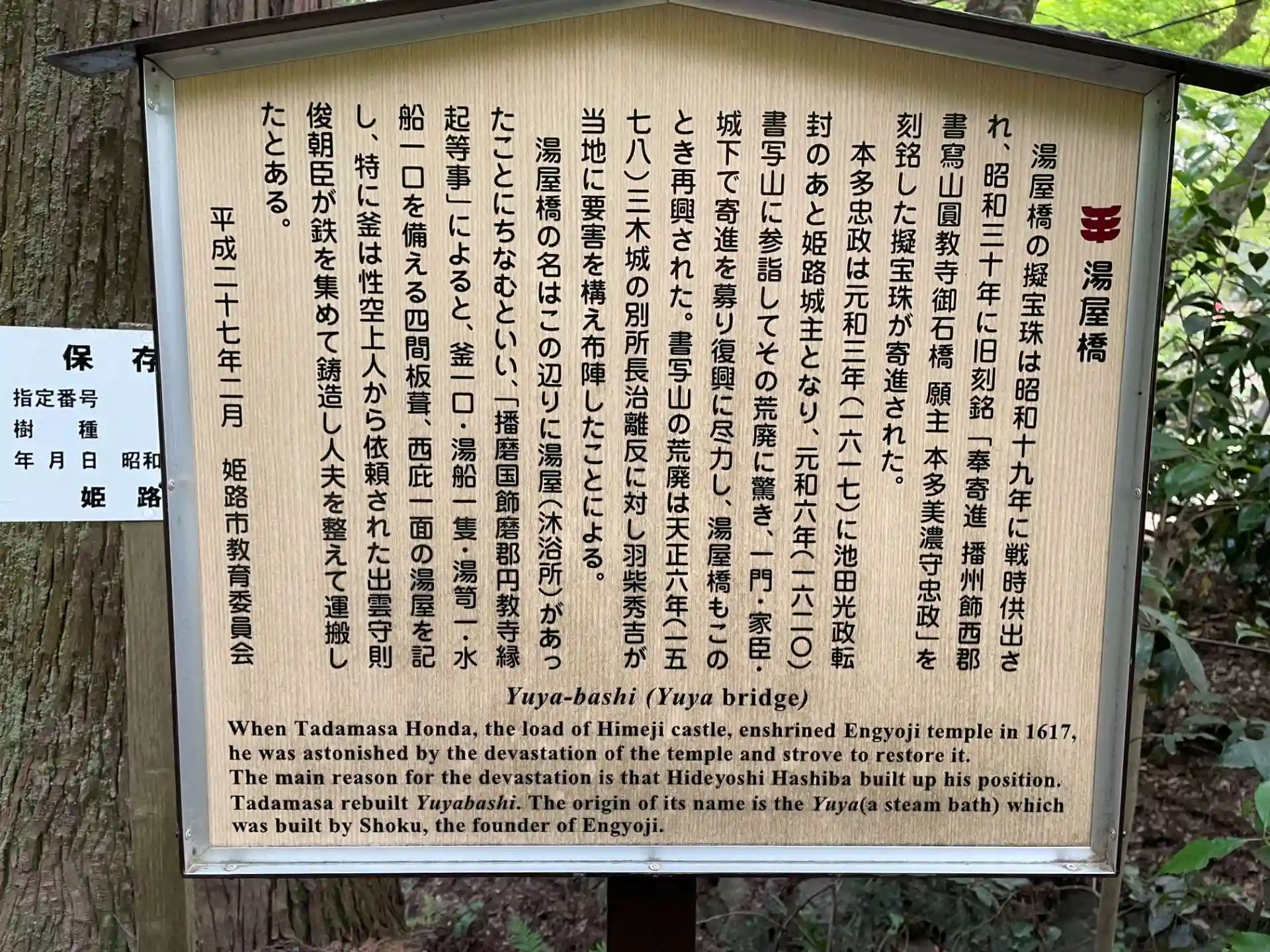 山号は書寫山(書写山)、宗旨宗派は天台宗、寺格は別格本山、ご本尊は釈迦三尊です。