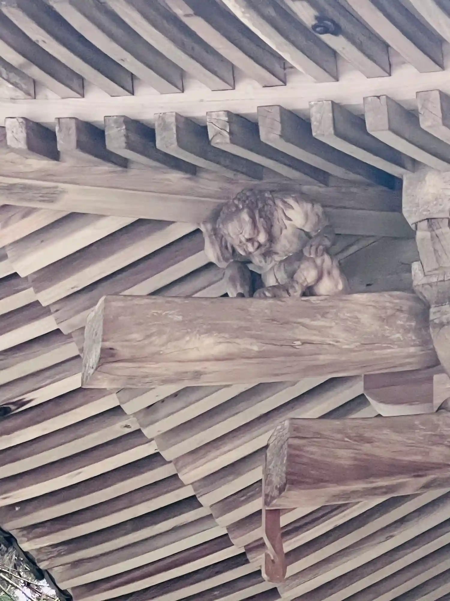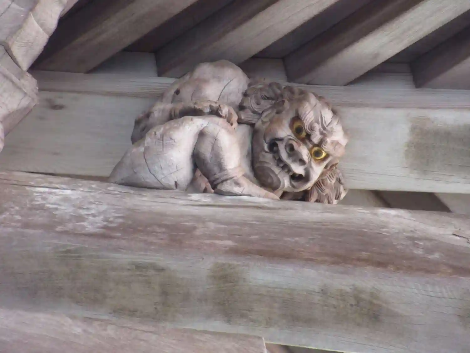 開山堂の軒下にある力士像。