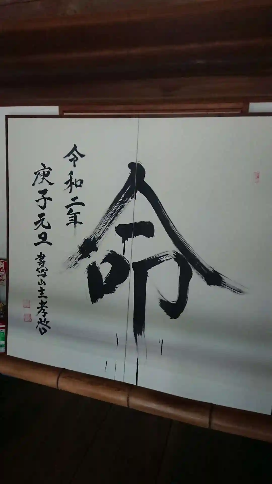 食堂2階にある、ご住職直筆のお手前。素敵です。