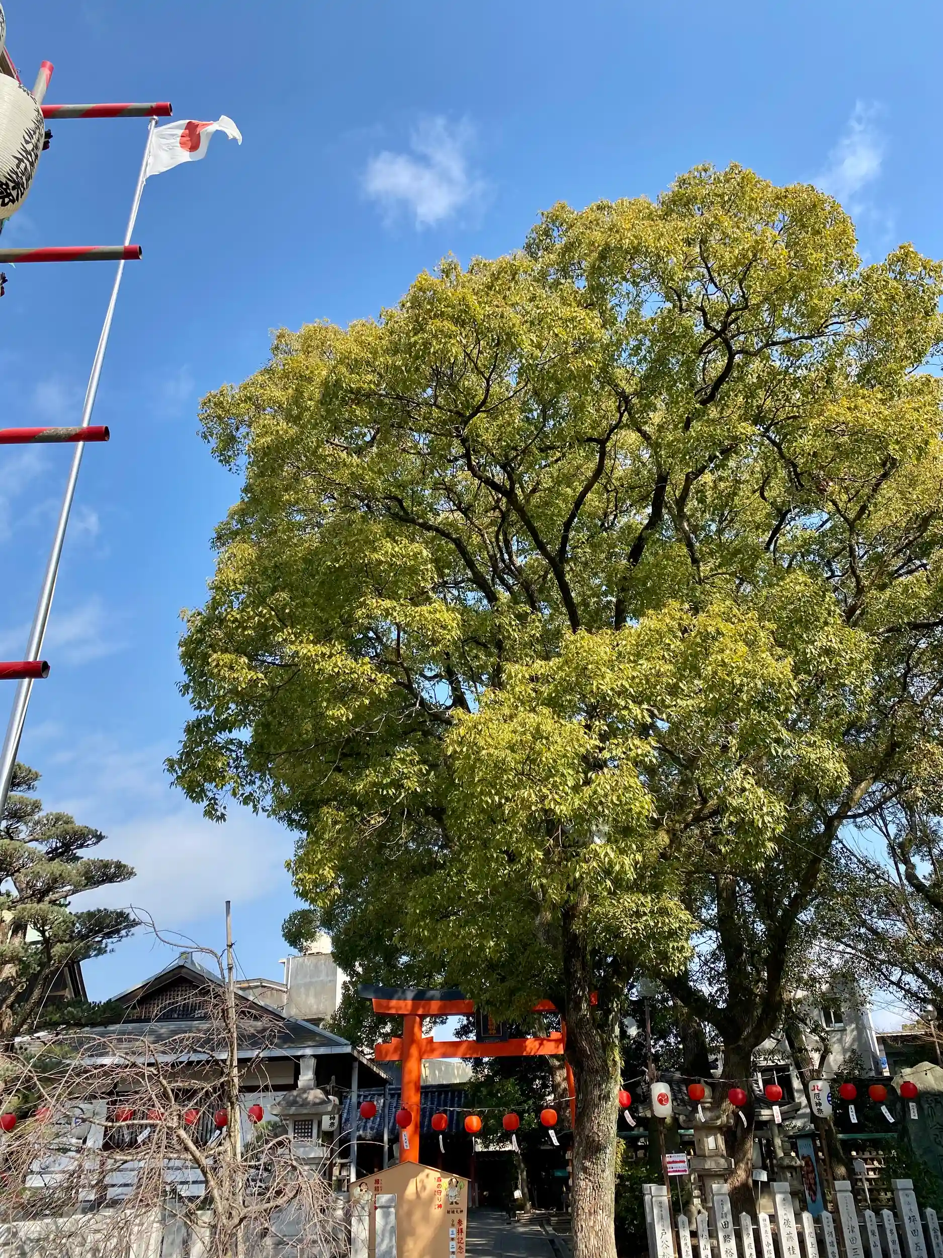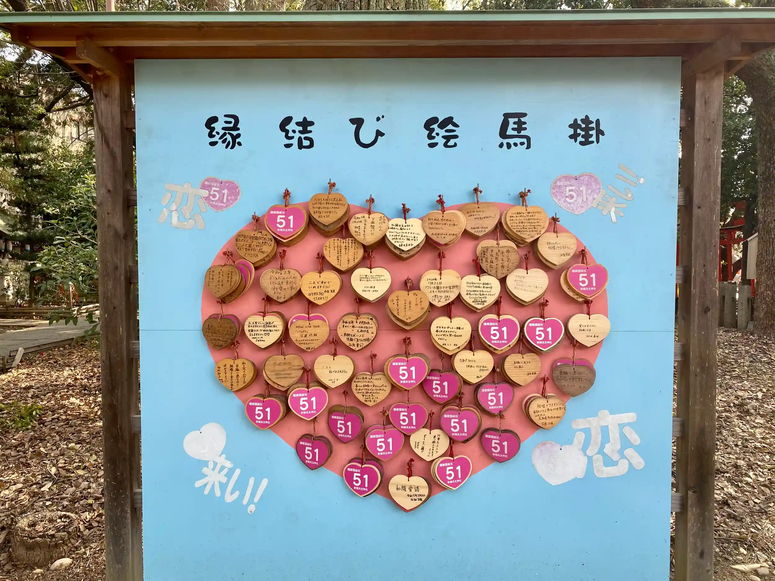 正式名称を射楯兵主神社といい、植樹の神「五十猛命」と縁結びの神「大国主命」を主祭神として祀る。