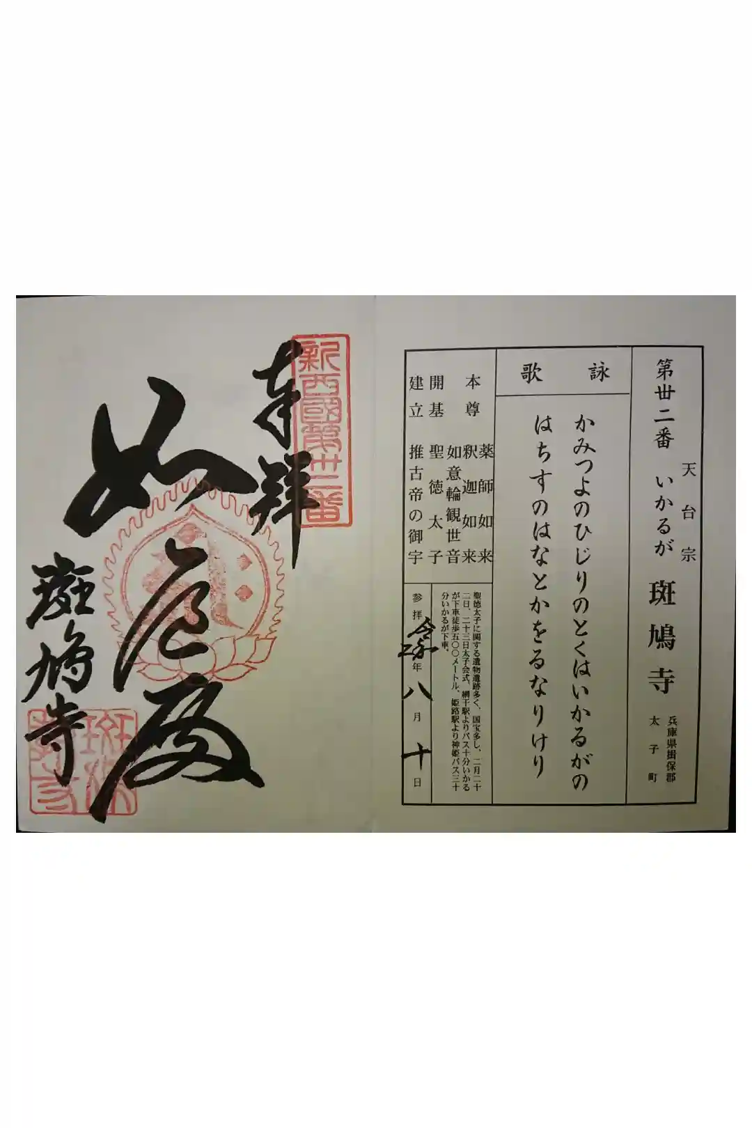 斑鳩寺の御朱印 写真一覧87枚2ページ目
