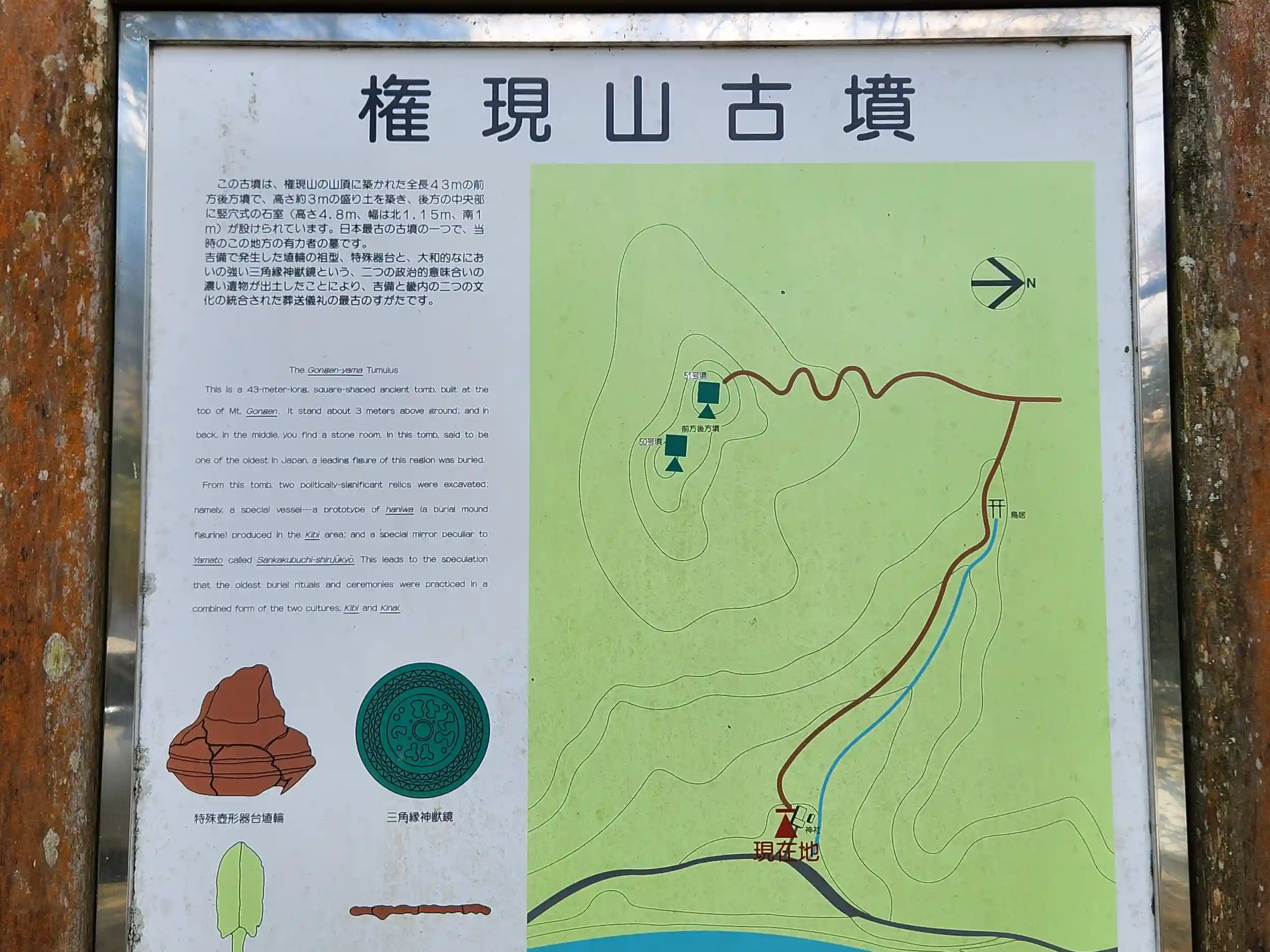 背後は権現山古墳群がある。大規模な前方後円墳と副葬品で、一時は全国に紹介された、権現山51号墳は特に有名。