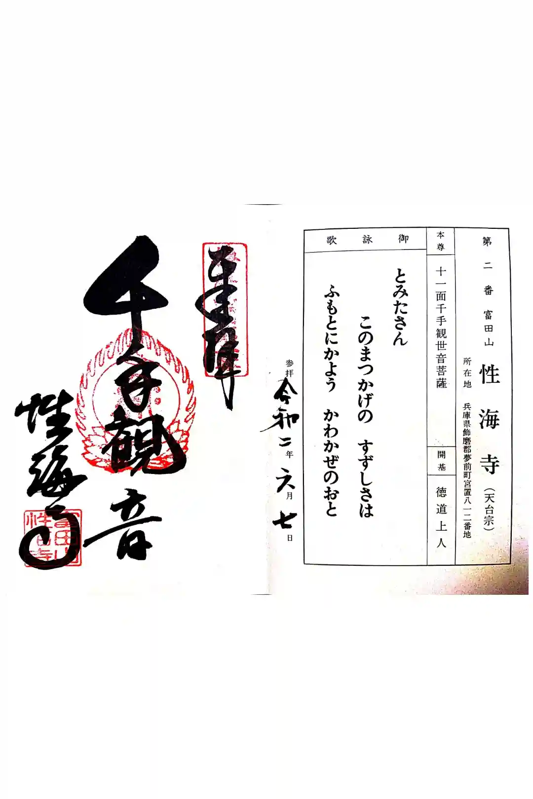 播磨西国33所巡礼で参拝。2番札所。