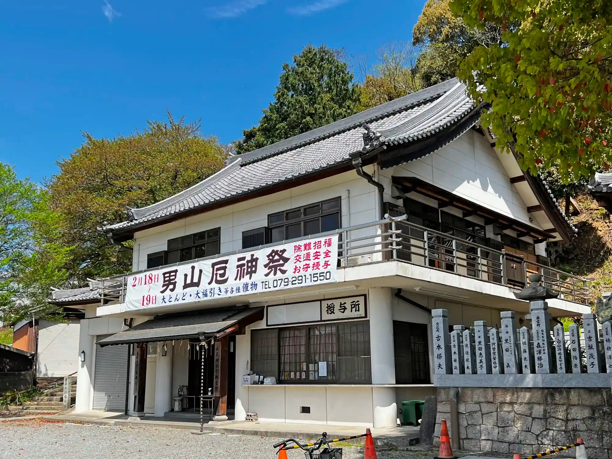 参道右手にある<社務所>。御社務所には当社の御朱印などが紹介されている。