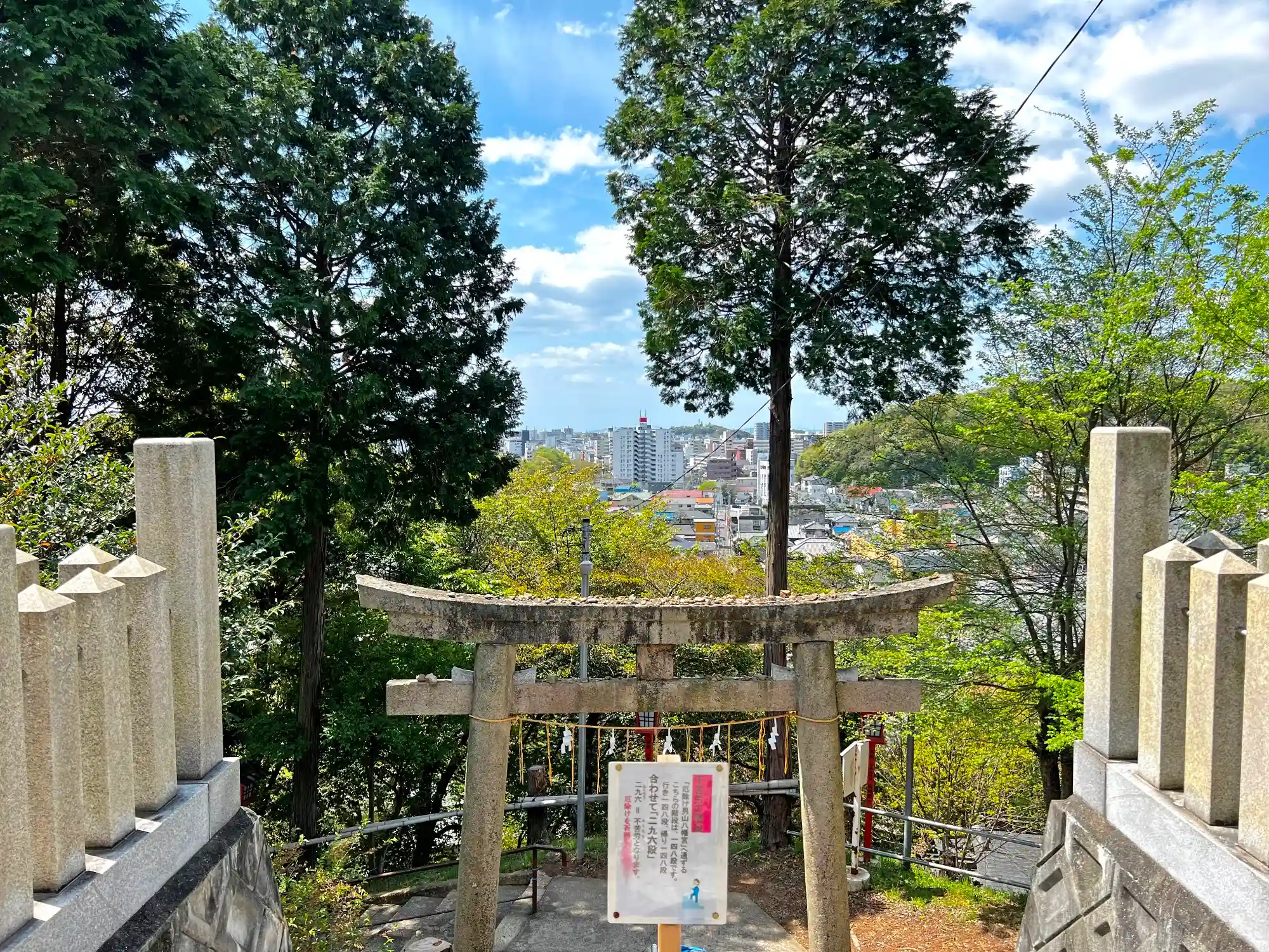 拝殿前から<二の鳥居>方向を望む。姫路市街が見える。