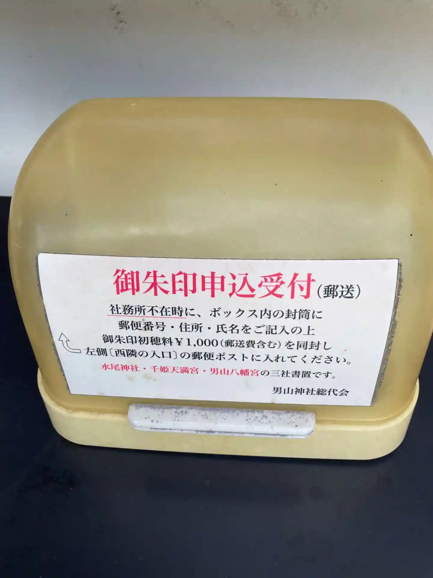 御朱印は 麓の社務所のポストに初穂料と送付用の封筒を入れておくと 後日郵送していただけます。