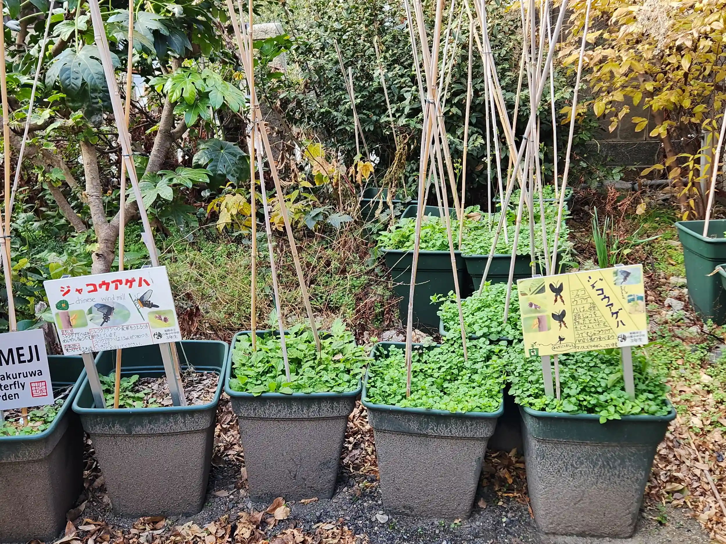 よく見ると、小学生が育てていて、ジャコウアゲハの餌となるそうです。