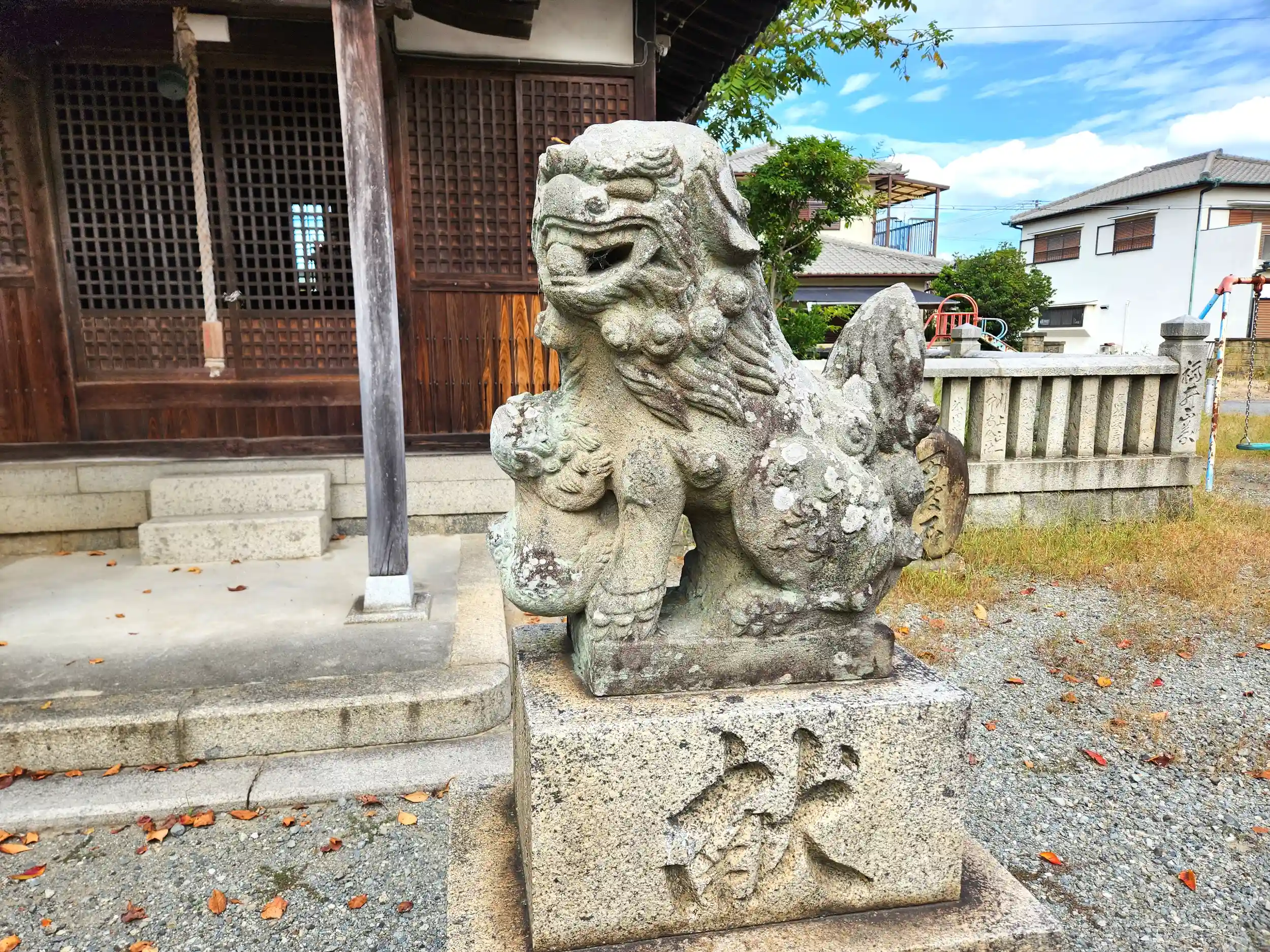 到着すると、本殿の背面が見え、その横から境内へ入ったのですが、滑り台や集会所があり、桜の木などもあって春には周辺住民の方の憩いの場になっているようです。