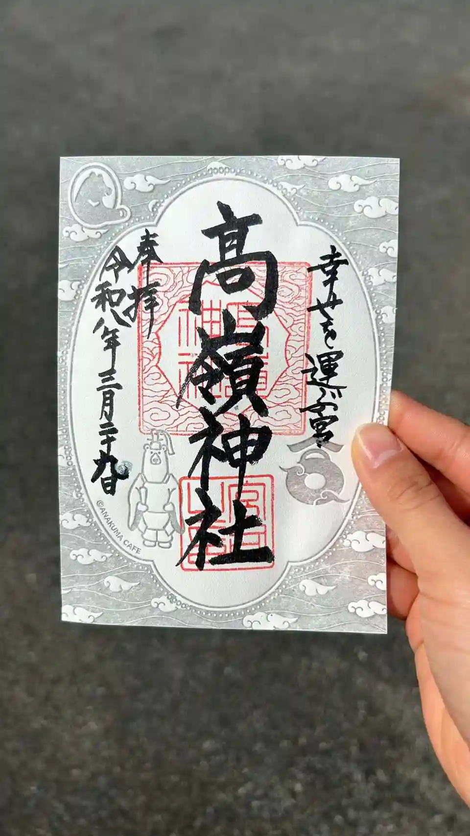 光にかざすと、押印された部分がやわらかく浮かび上がり、まるで御朱印そのものが呼吸しているかのような、静かな立体感を感じていただけます。