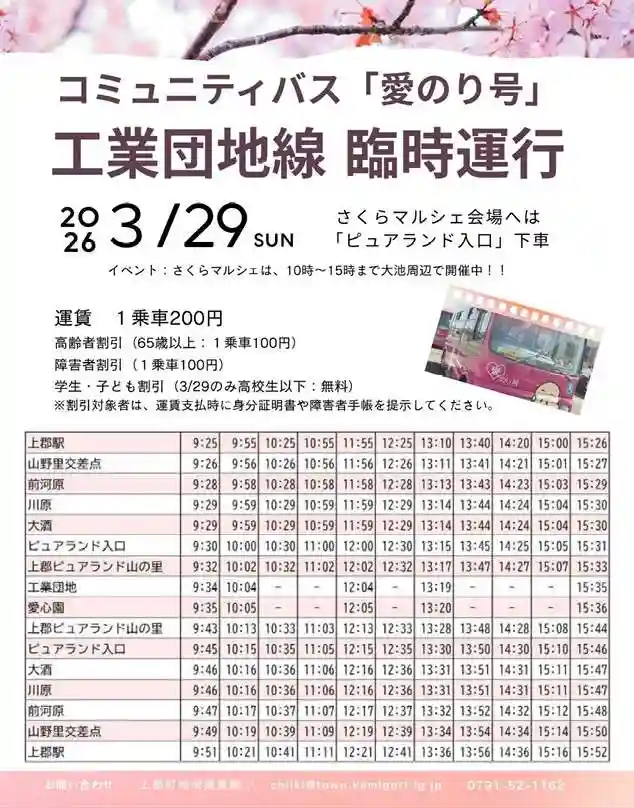 ※3/29(日)はJR上郡駅から臨時バスが運行いたします。