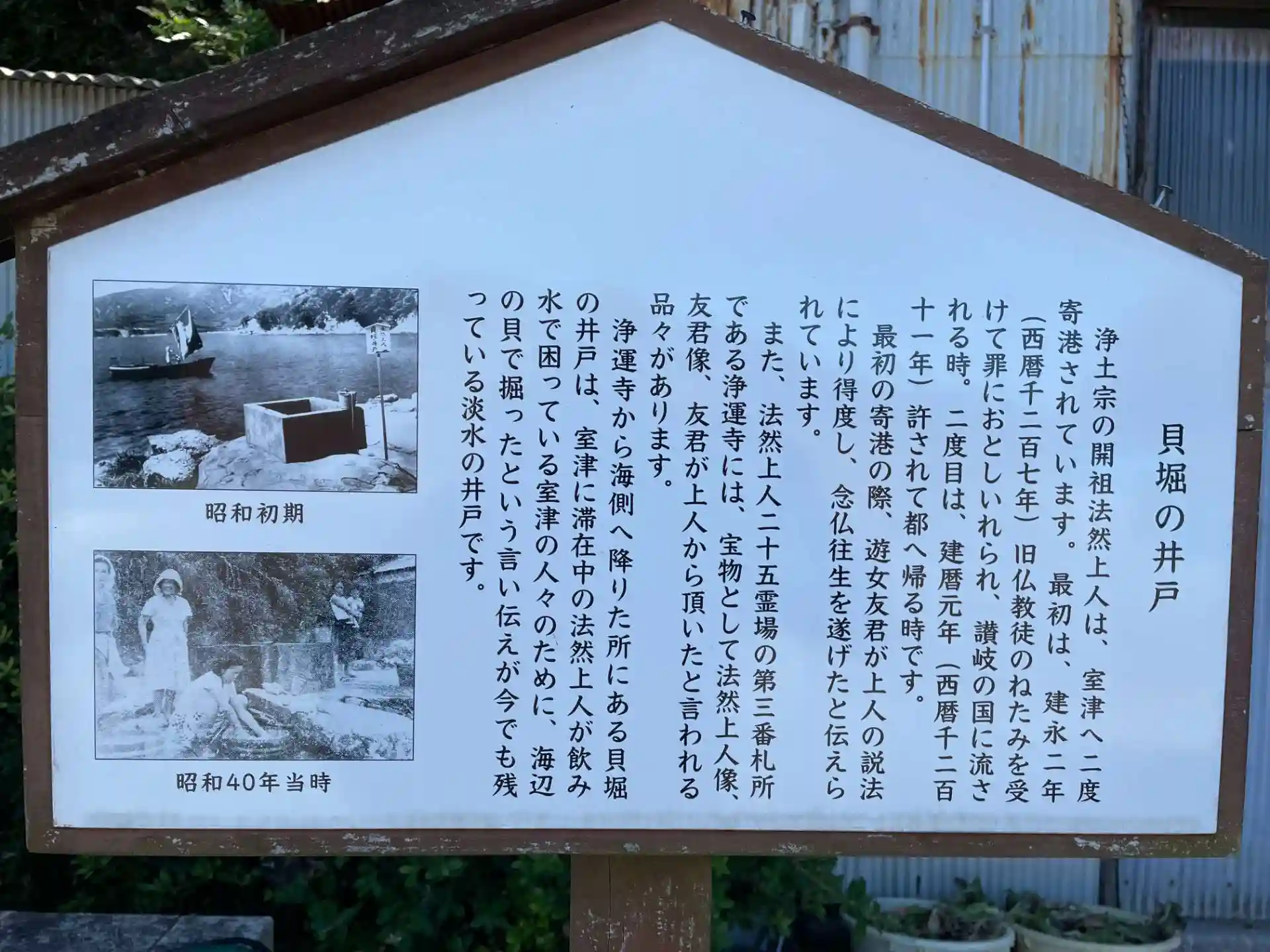 また 飲み水に困っていた室津の人のため 法然上人が寺のすぐ下の海辺を貝殻で掘ったところ 海辺でありながら 淡水が湧き出たそうです。
