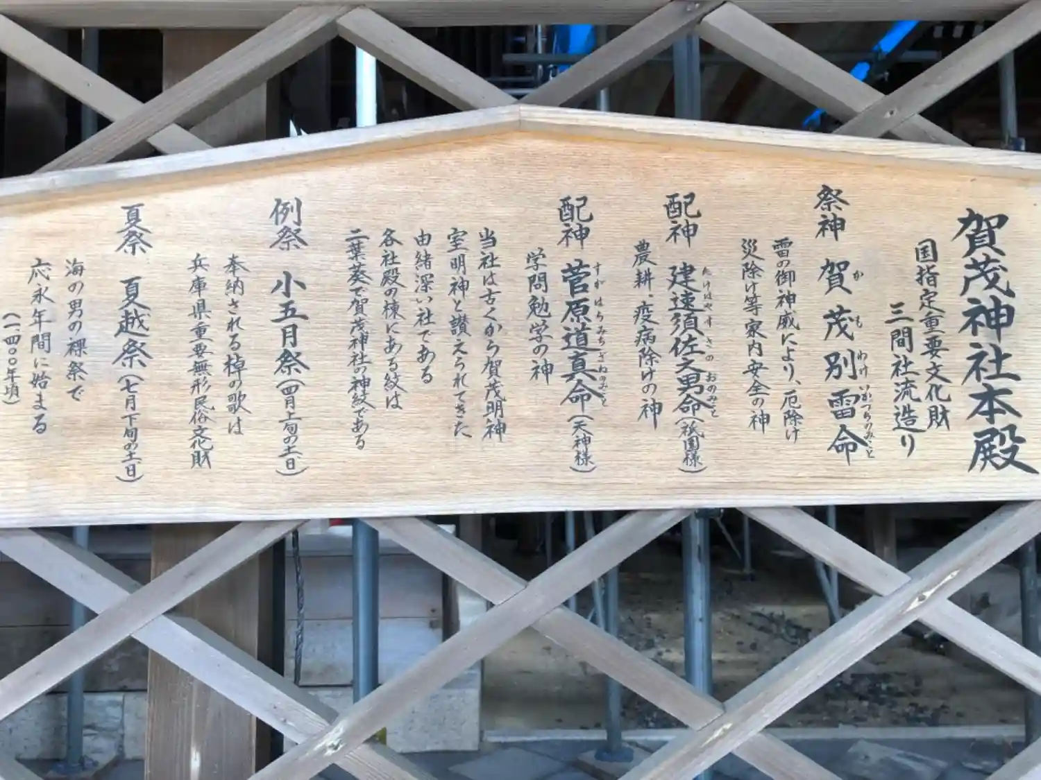 | ご祭神 | 《主》賀茂別雷神,《配》素盞嗚尊,菅原道真 |