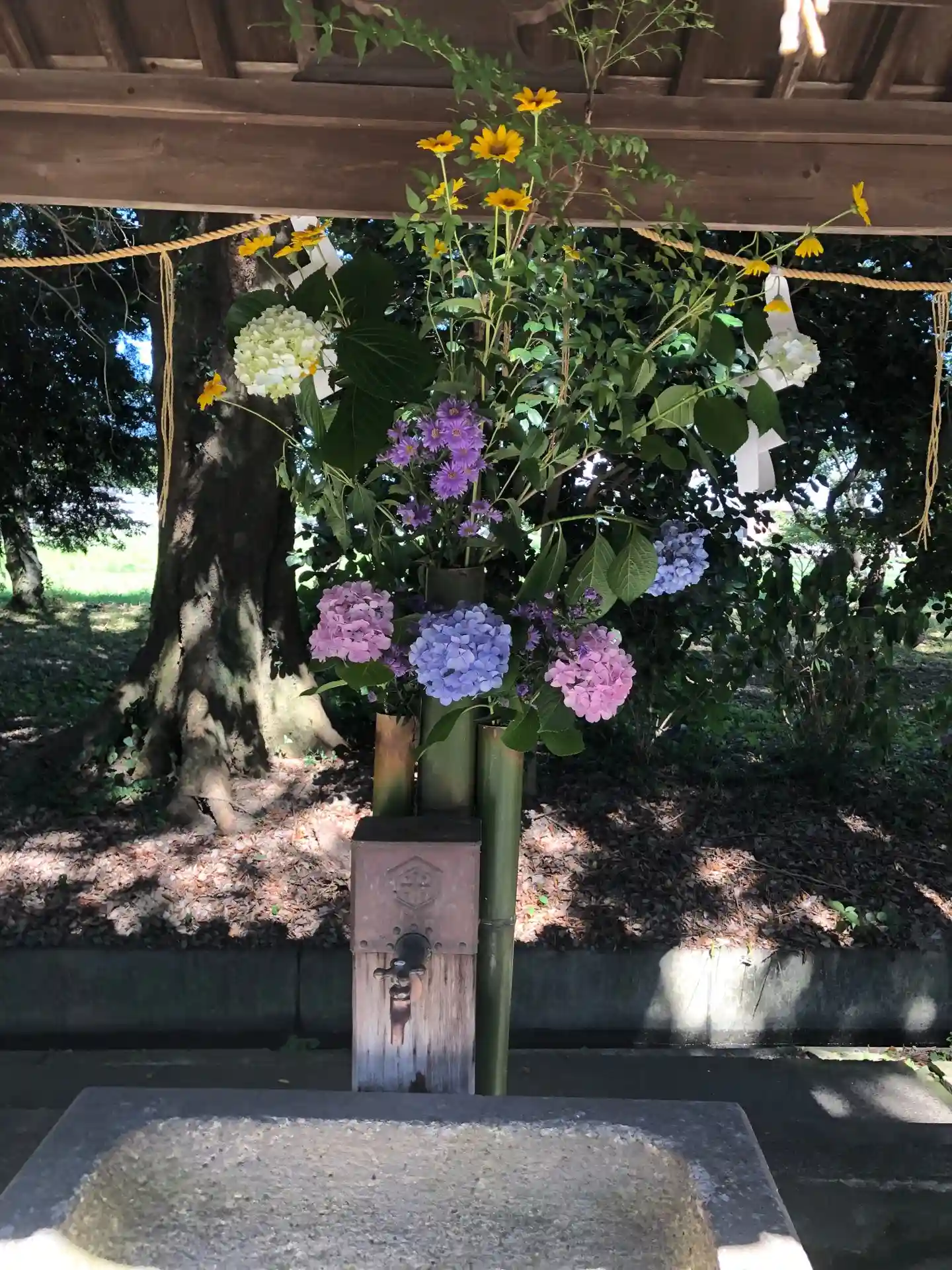 蛇口式でした。その上には花が生けられていました。ある種の花手水、かな?