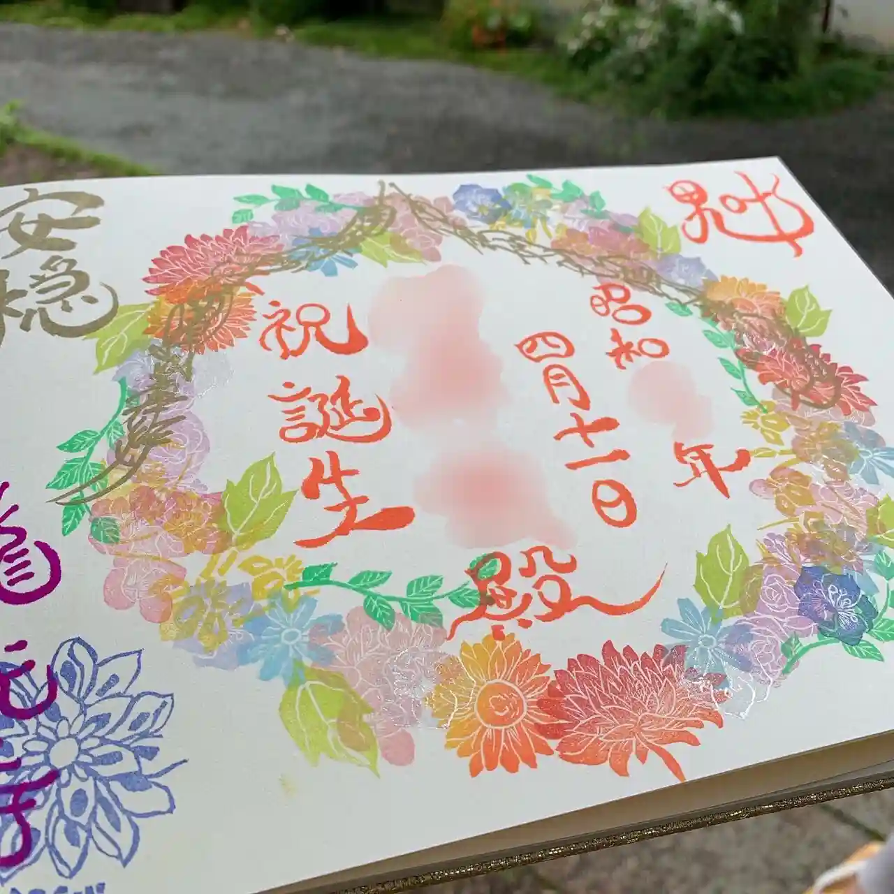 妻が花のスタンプ作成から色決め、配置、スタンプ押し…全てやってくれました!