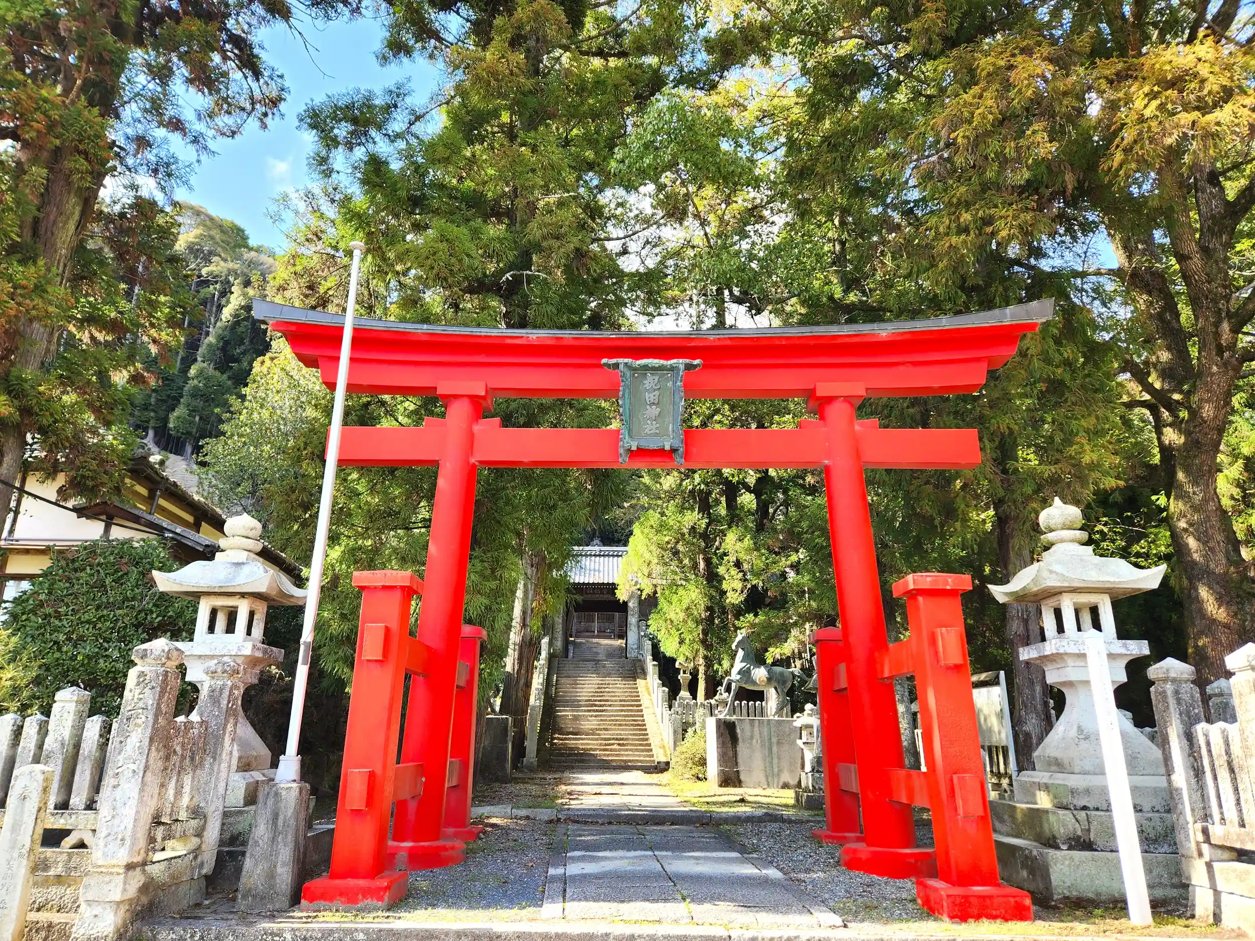 写真には写っていませんが、参道を挟んで一対の神馬像となっています