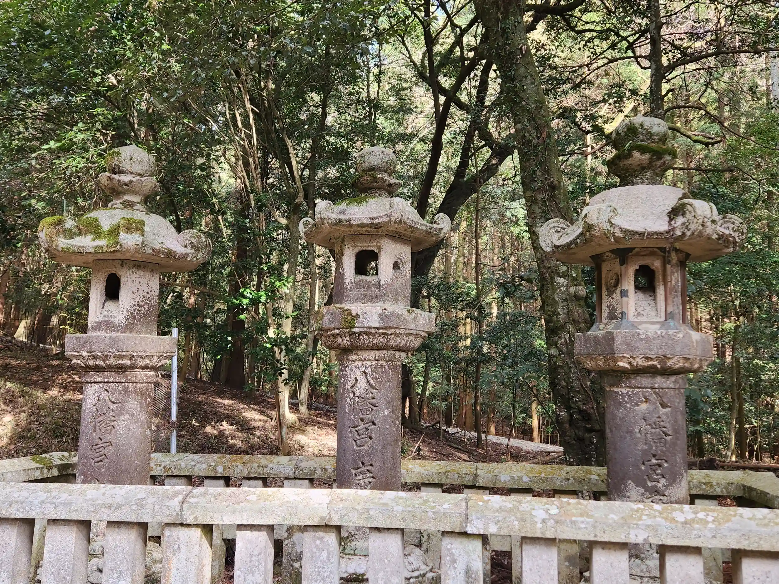 先日投稿した祝田神社と同じく、境内には三基の石燈籠。