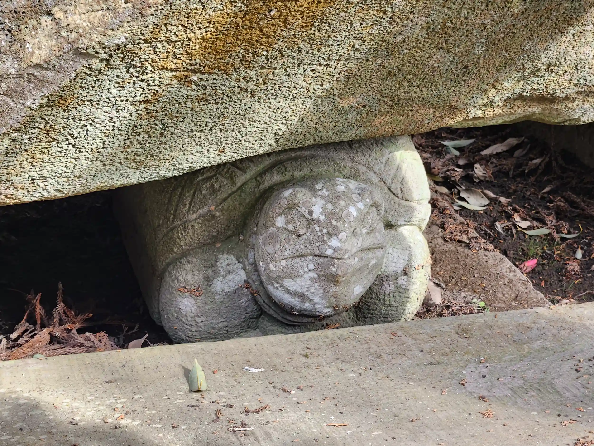 手水鉢を頑張って支えてます!