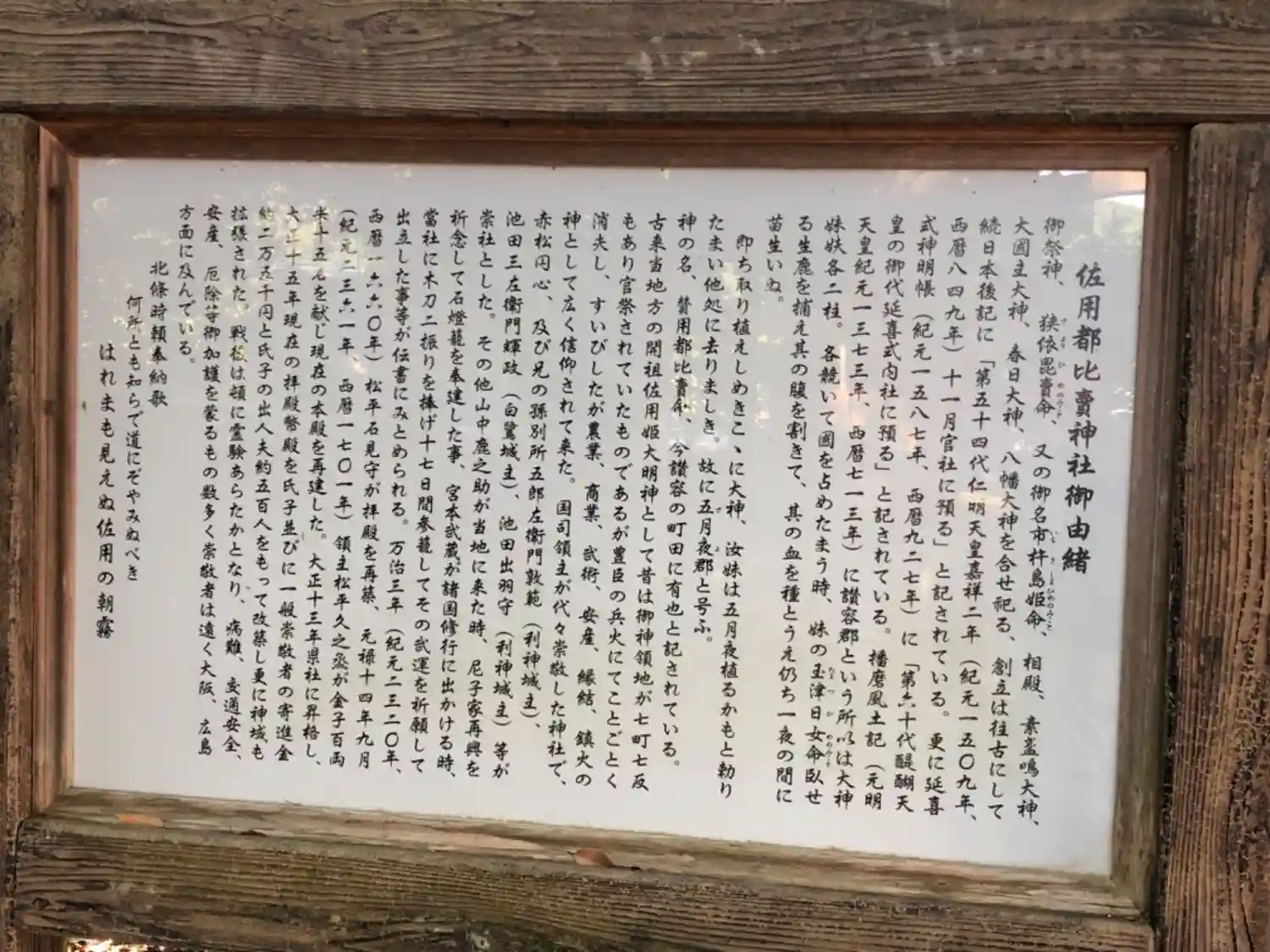 風土記は各令制国で作るよう命令が出て国の数分編纂されましたが殆どが失伝しており、現在残っているのが出雲、常陸、豊後、肥前、そして播磨となります。国の歴史に基づいて存在している神社ということですね。