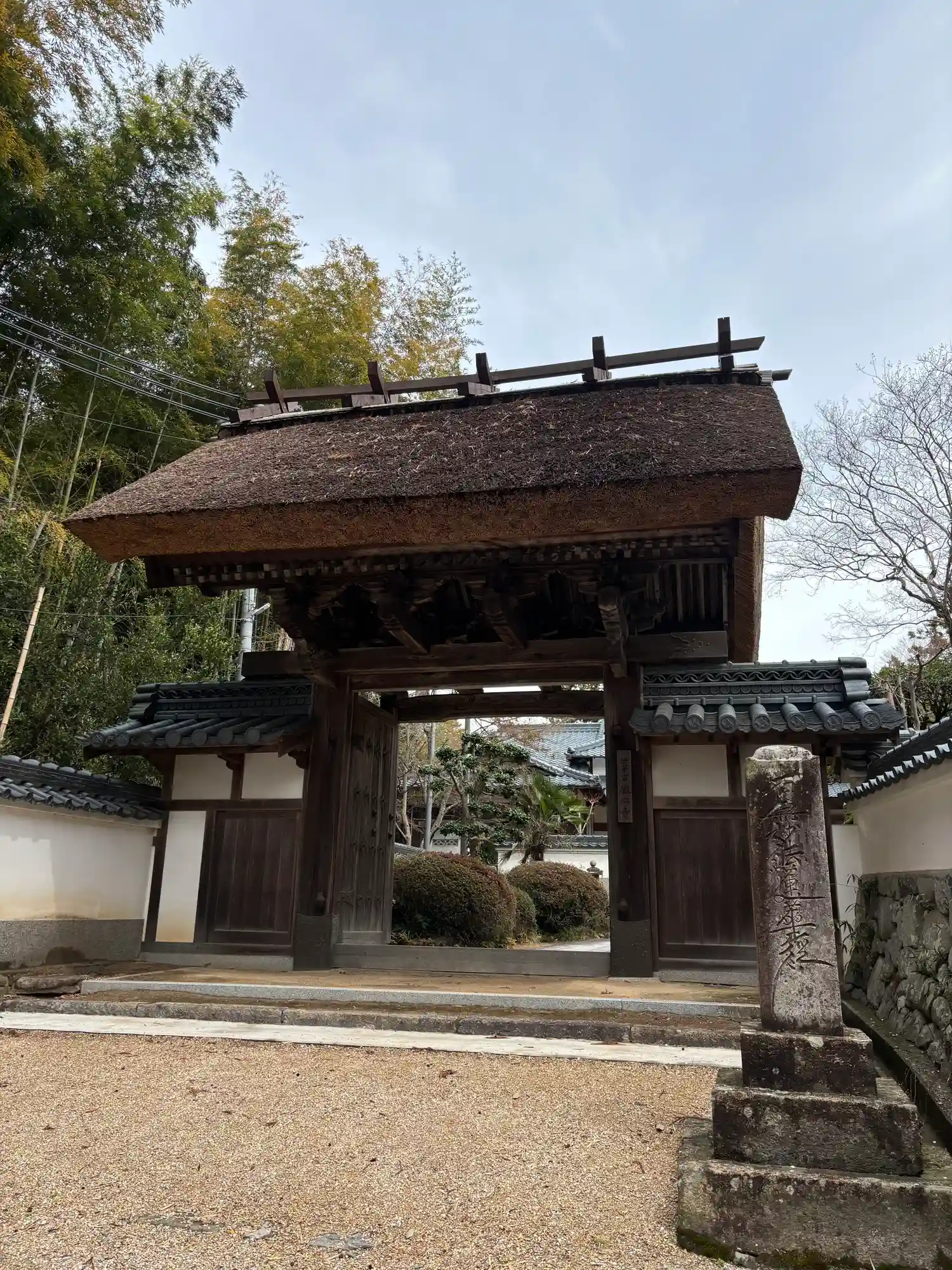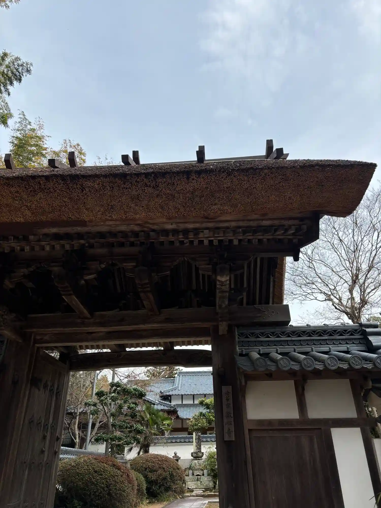 茅葺屋根の山門を抜けると同じく茅葺屋根の本堂。