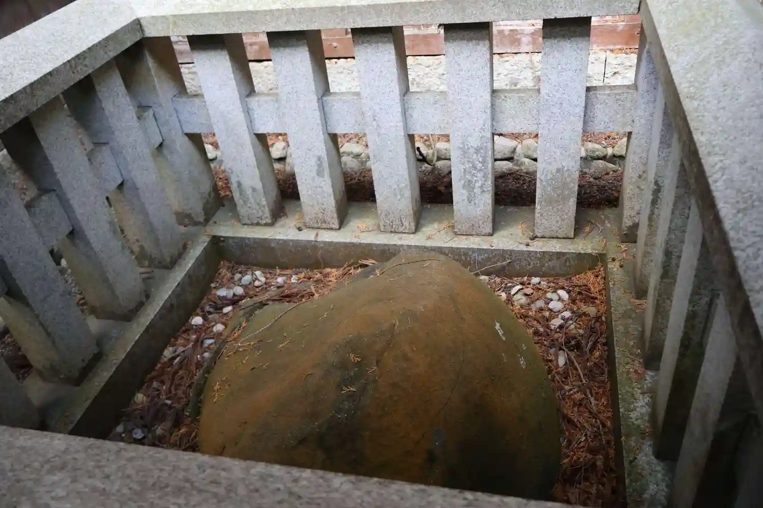 本殿後方に回り込むと「鶴石」が祀られています