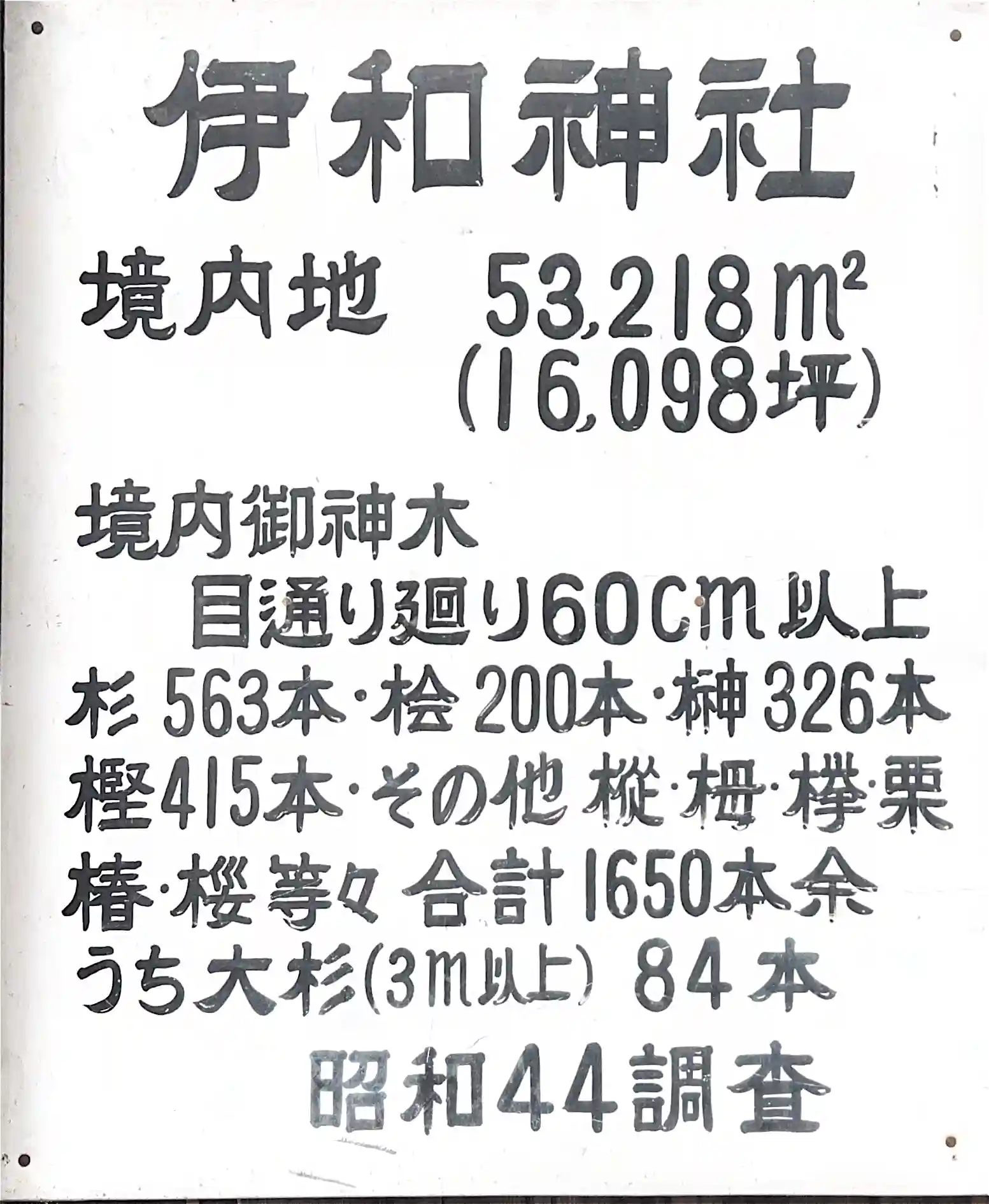 一年ぶりに参拝しました、境内地の調査の掲示板を見つけました、すごい巨樹の多さですが、調査が 昭和44年! 55年前とは・・・・せめて10年前位の調査資料が見たいです(私だけかな)