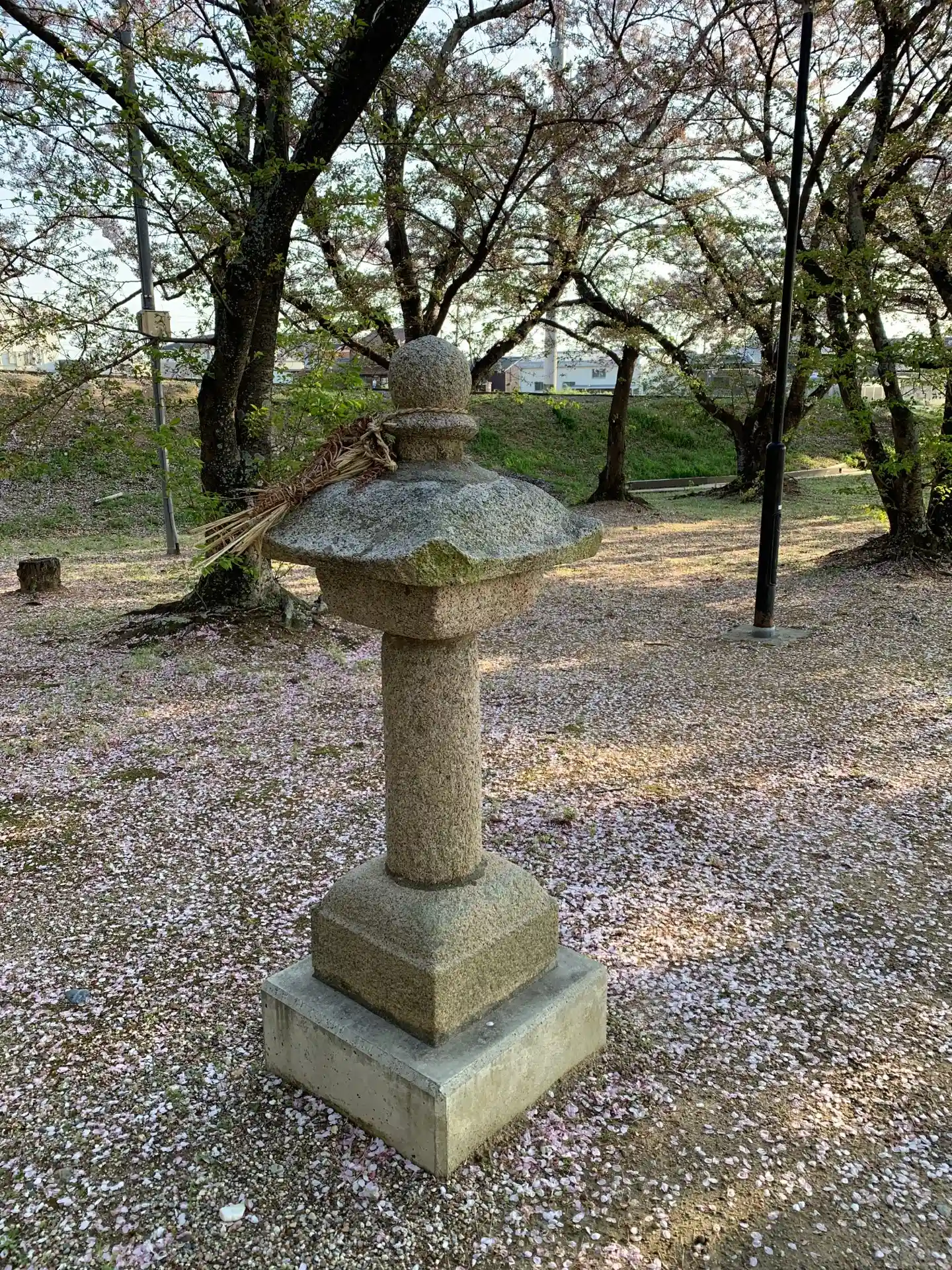 古い灯籠です。狛犬や灯籠にしめ飾りがついています。