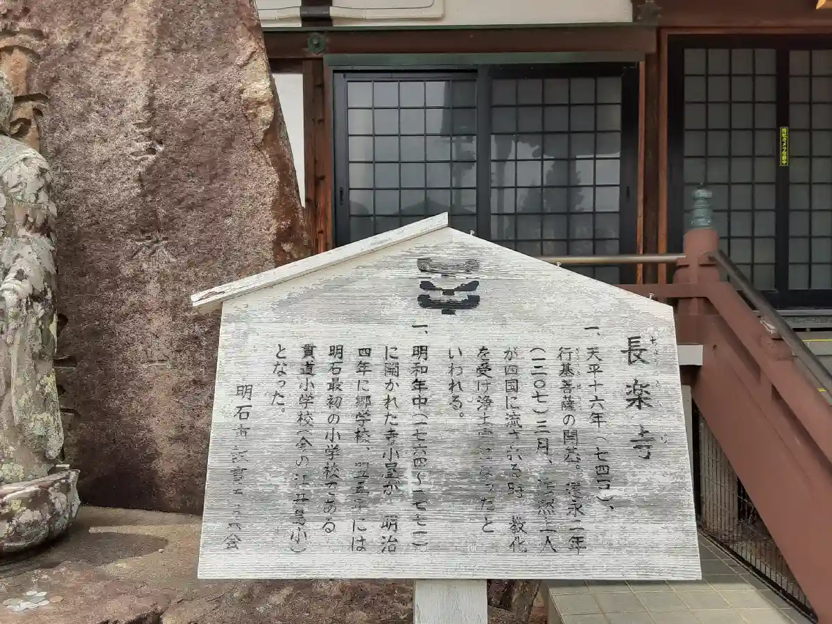 由来のある寺院で、聖武天皇の天平16年(744)に行基が魚住の泊(港)を築いた時、平安を祈って地蔵尊を彫り、この寺を建てたのがはじまり。