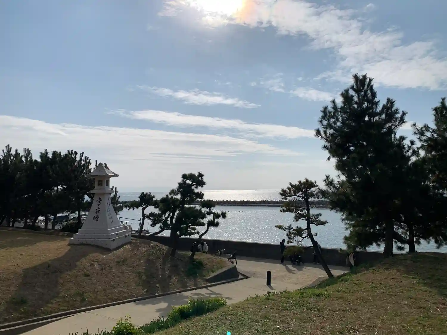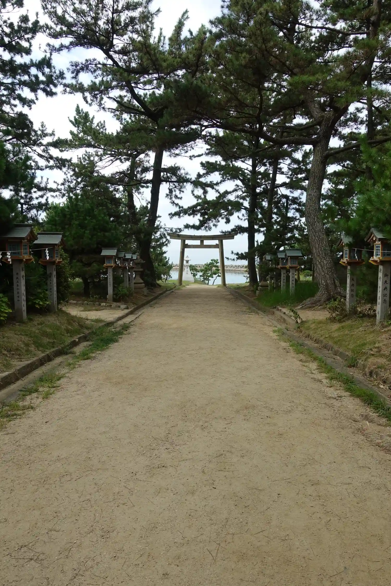 参道を囲む松林の先に広がる播磨灘!