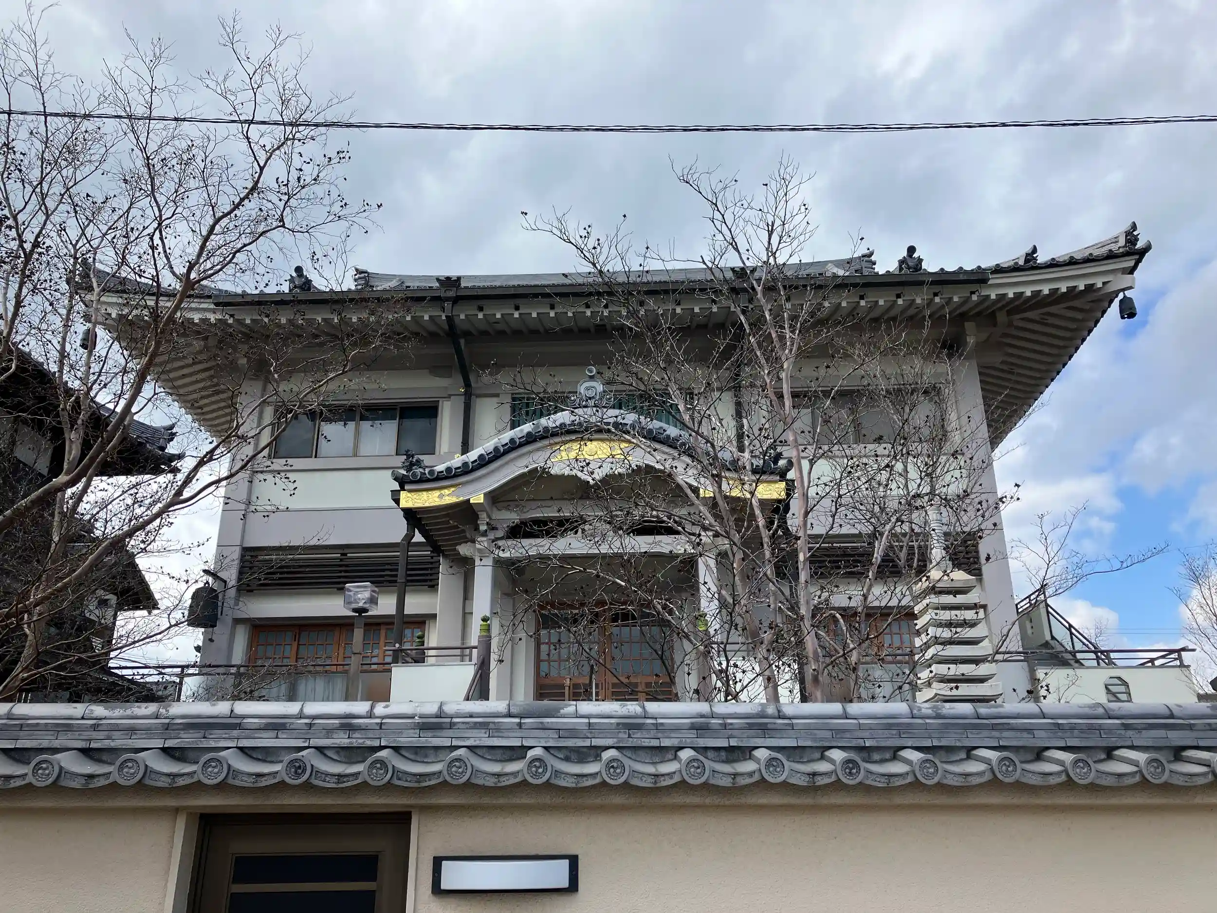 現在の鉄筋3階建の本堂は1993年の建築である。